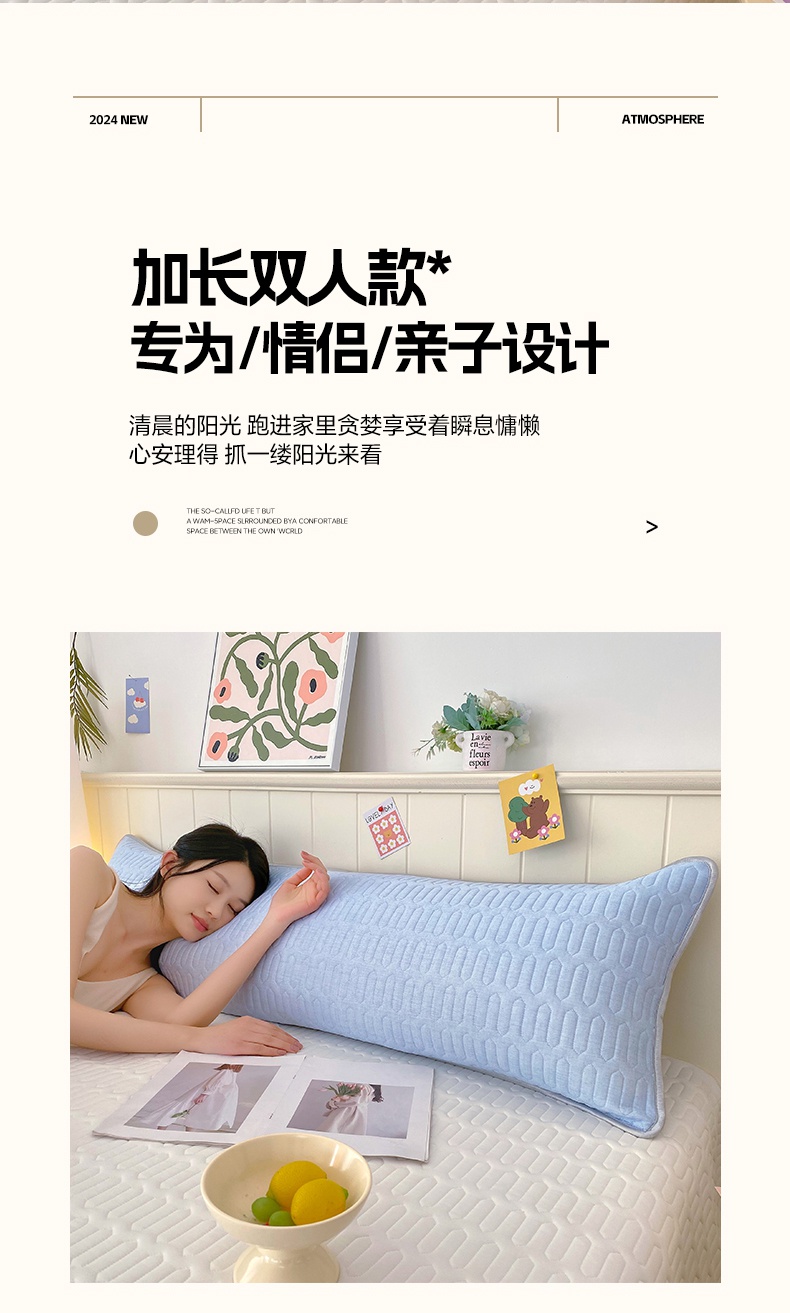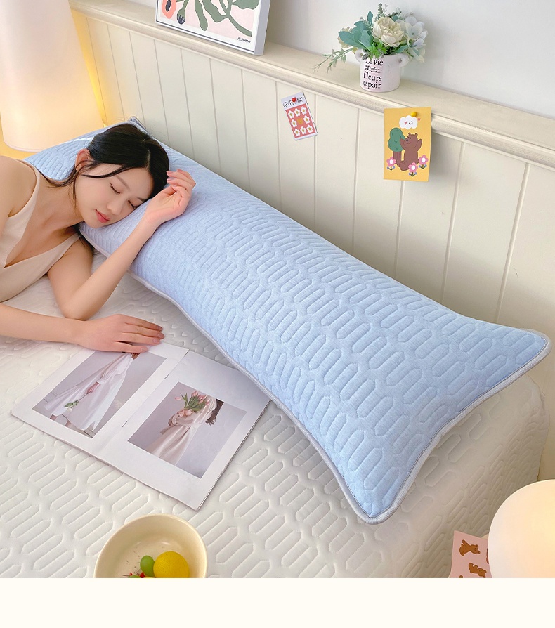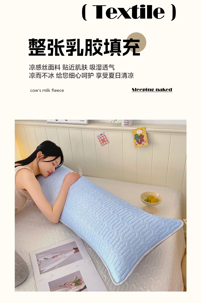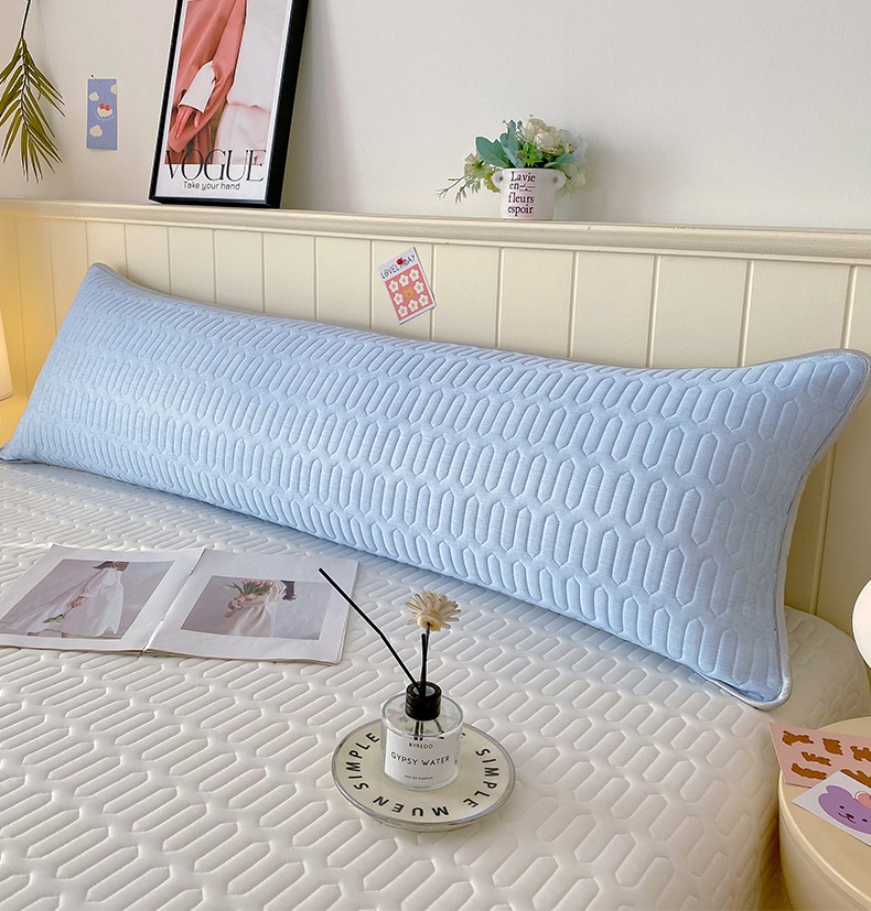 雨彤家纺 2025年新款A类乳胶凉感丝双人长枕套 肌理纹-蓝