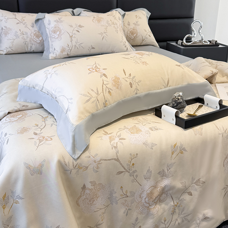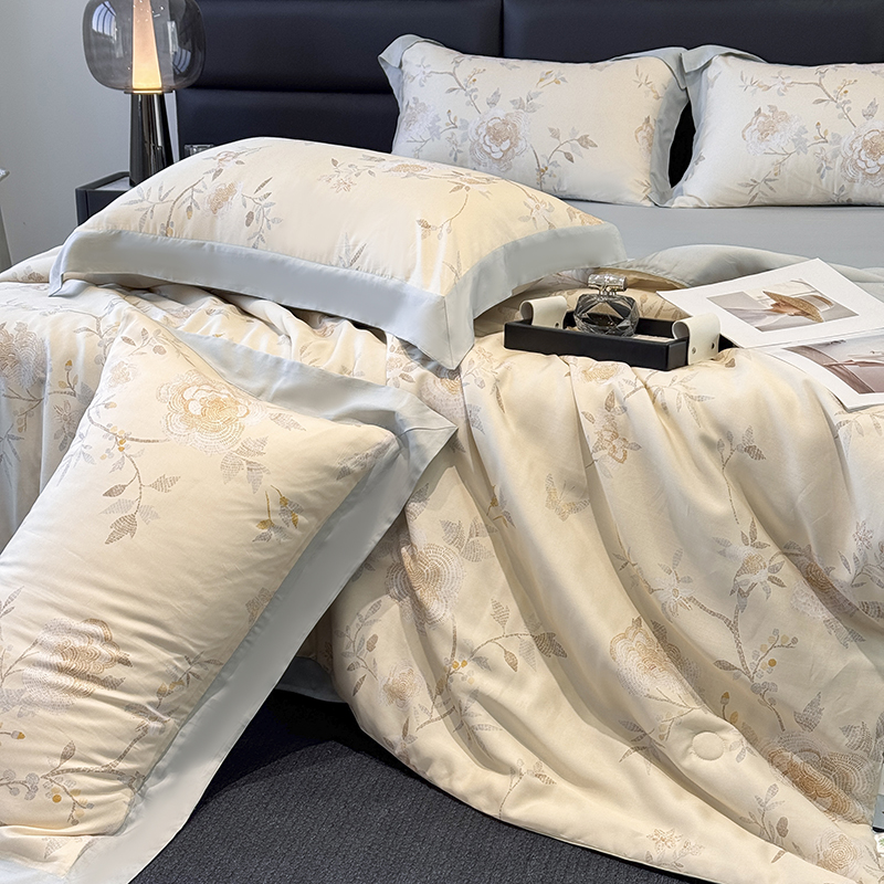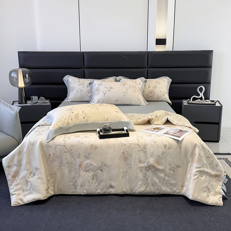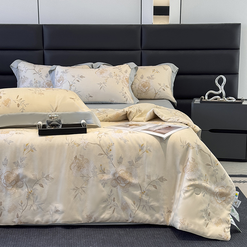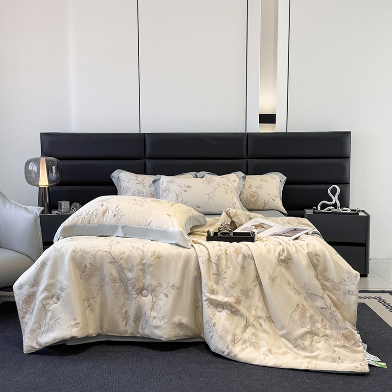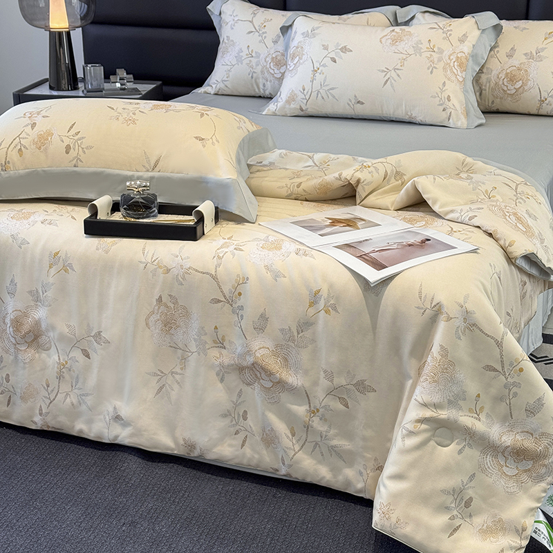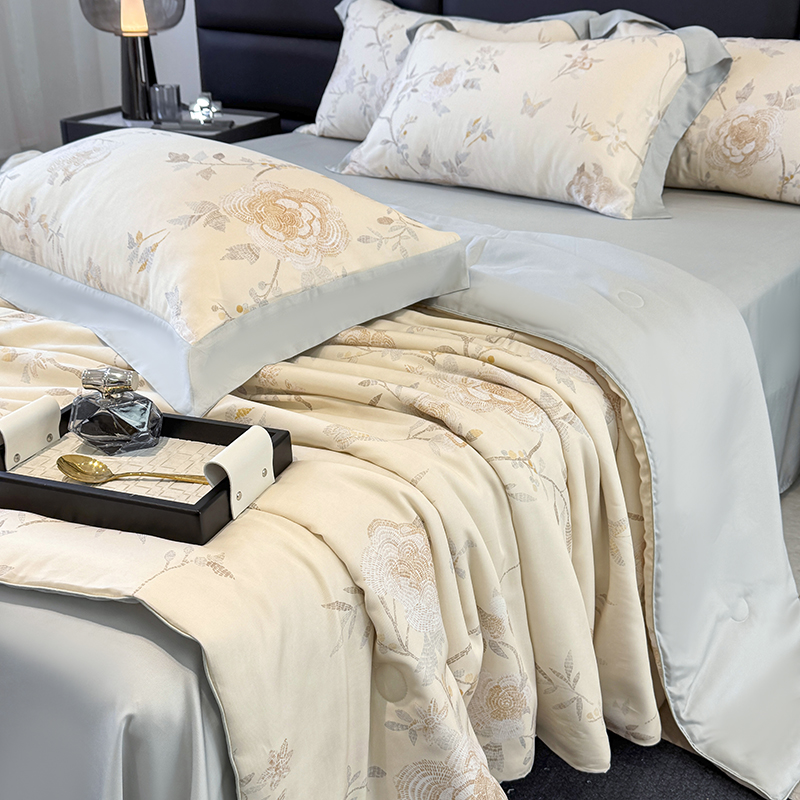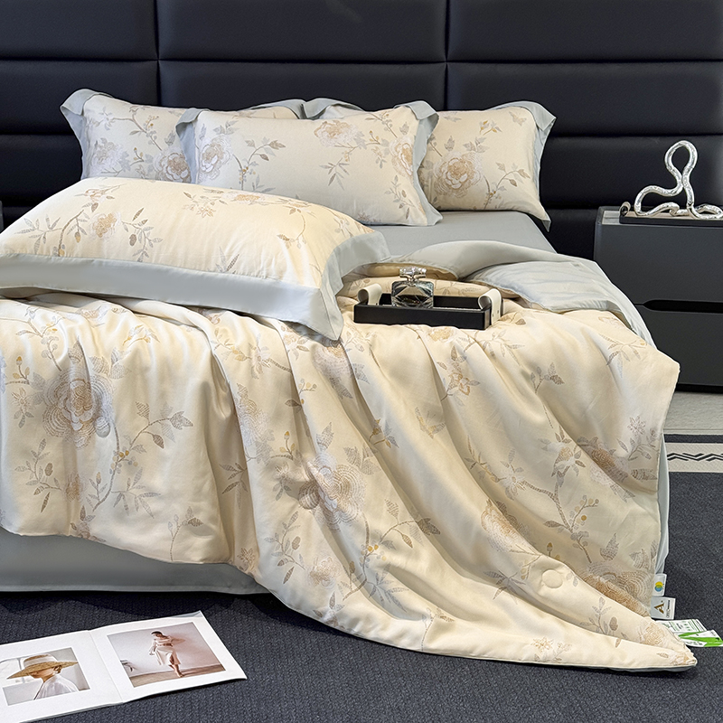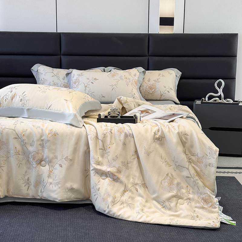 • 91家纺网 家纺一手货源 找家纺 衿成家纺 2025春夏新款莱赛尔天丝夏被嵌绳款数码印花单夏被夏被四件套 妍艺