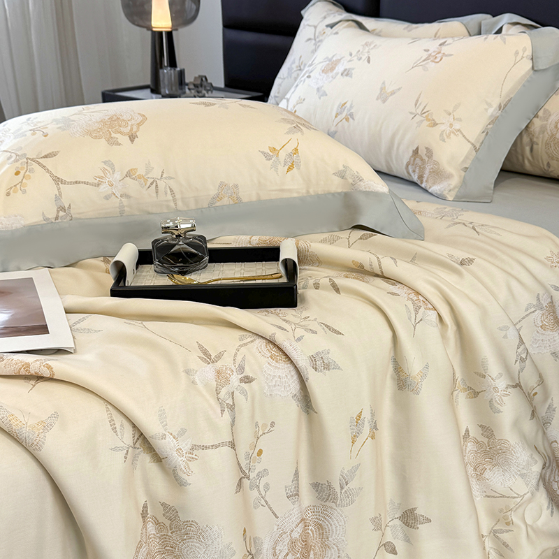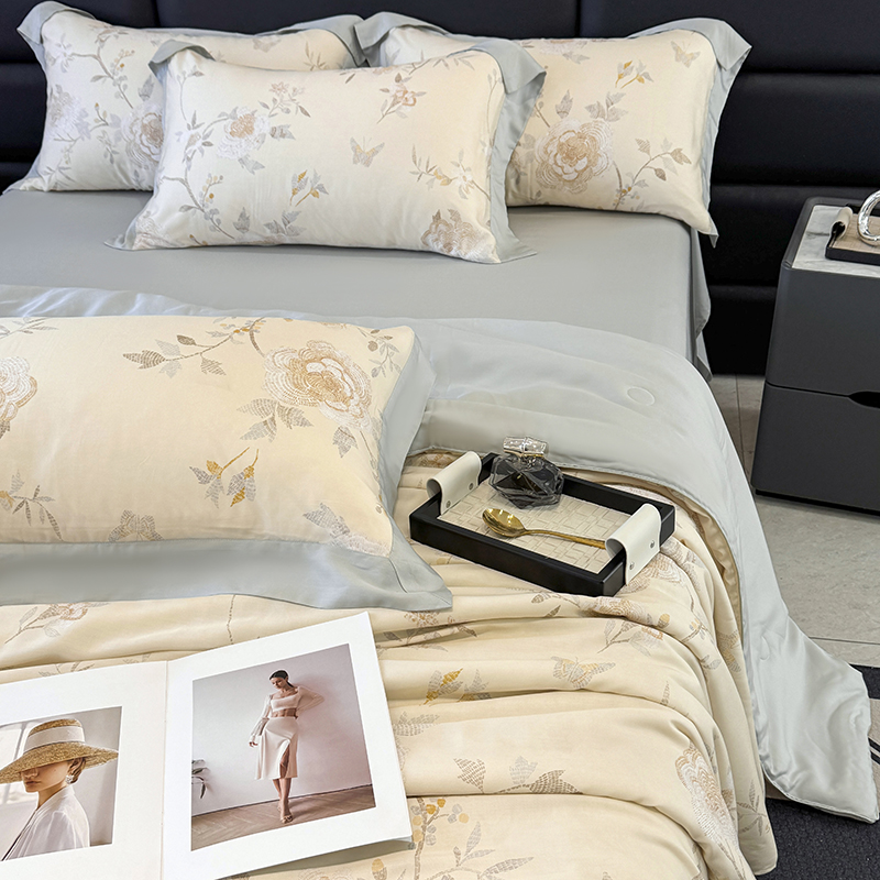 衿成家纺 2025春夏新款莱赛尔天丝夏被嵌绳款数码印花单夏被夏被四件套 妍艺