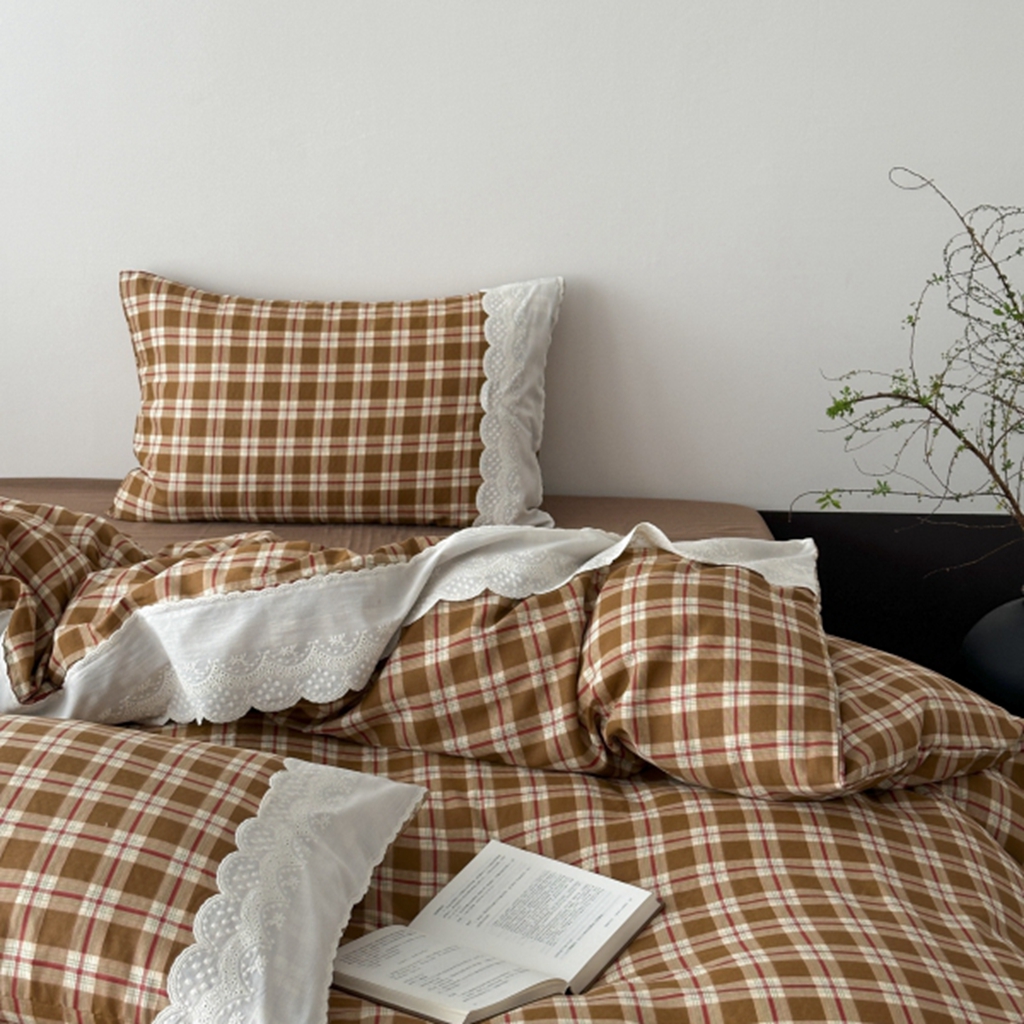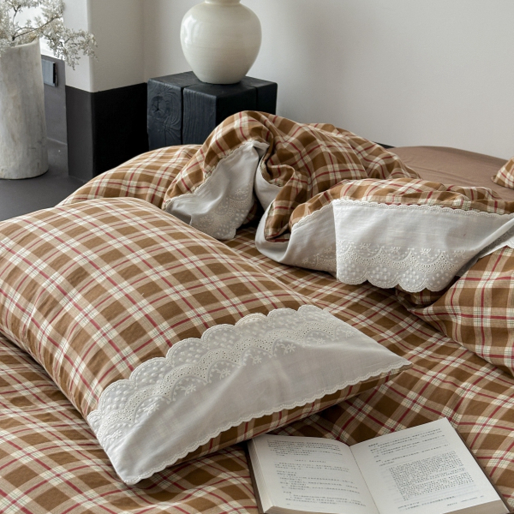 (总)旷野 2024双层纱碎花蕾丝拼接款四件套--柏林花事,柏林花事-粉,柏林花事-黑,柏林花事-奶咖