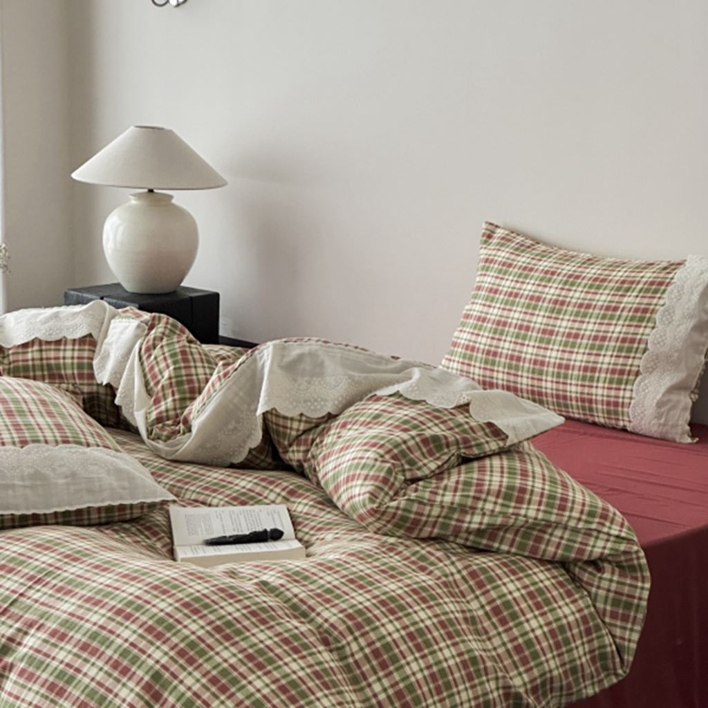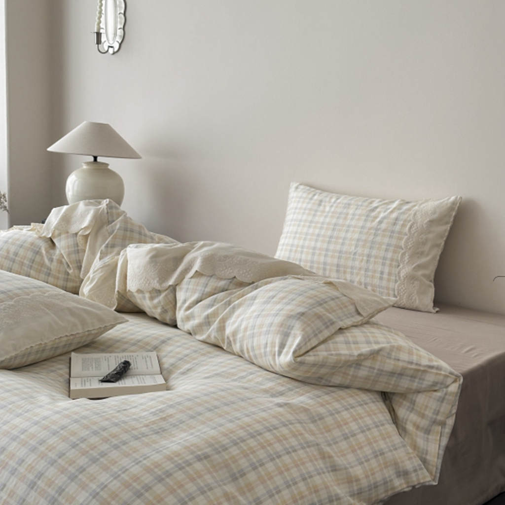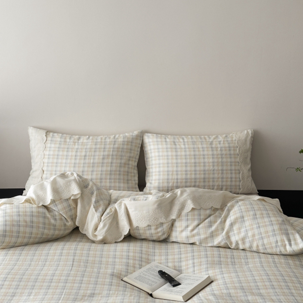 (总)旷野 2025新款空气层提花皱皱纱碎花边工艺款四件套-竹梦,竹梦