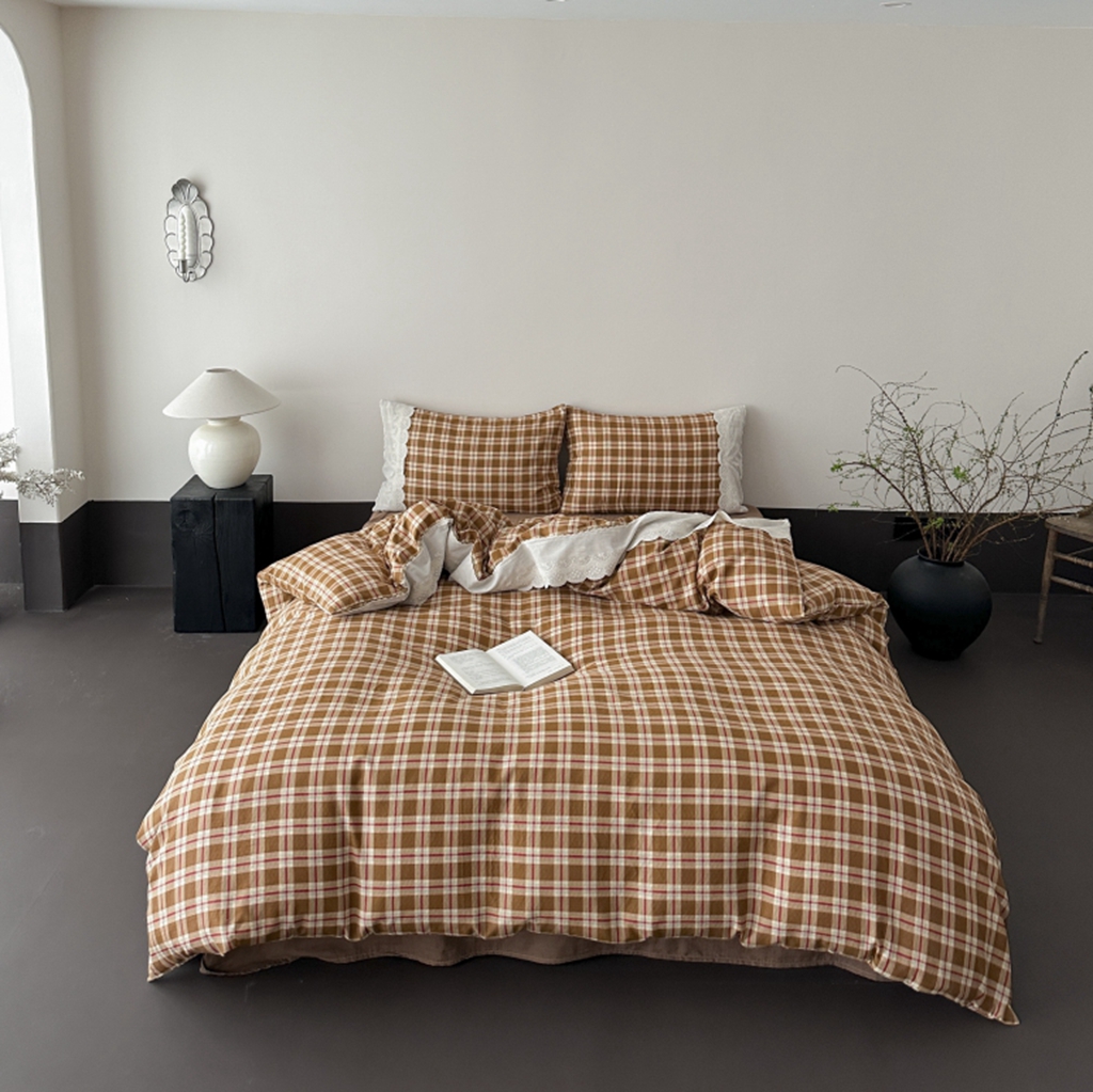 旷野 2025新款全棉纯棉60支双层纱四件套 清冷乌木