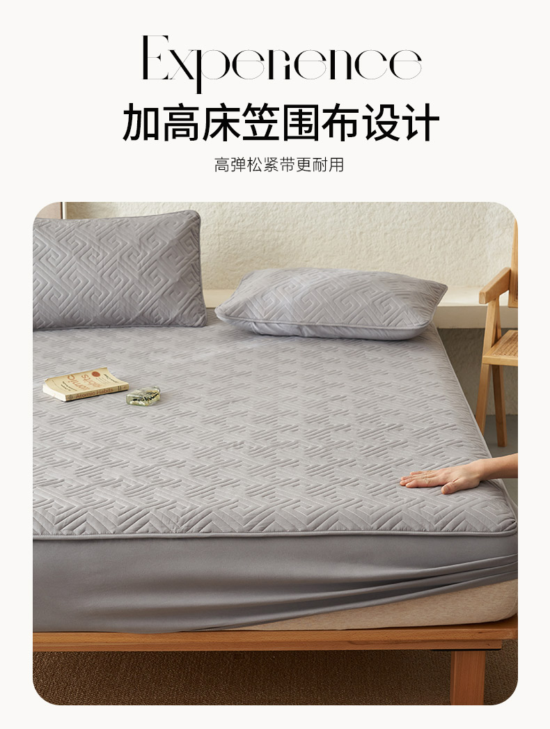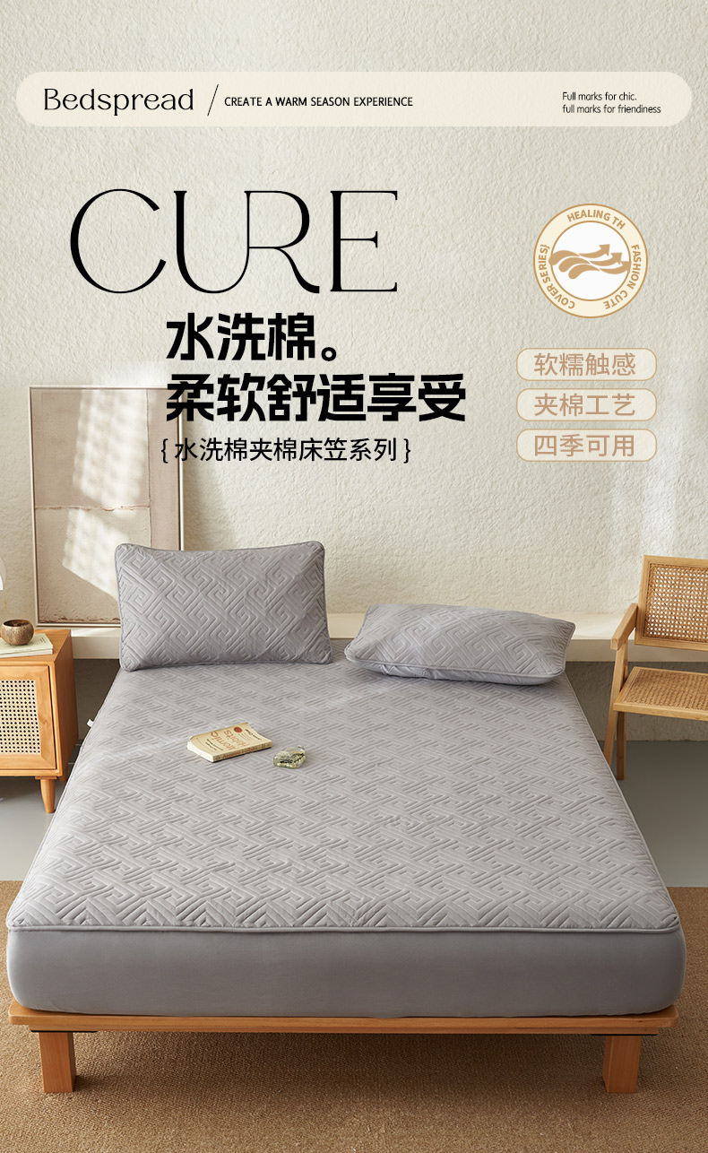 商品名称:鑫琪莱家纺 2026新款水洗棉绗绣夹棉床笠 夹棉床笠-浅灰