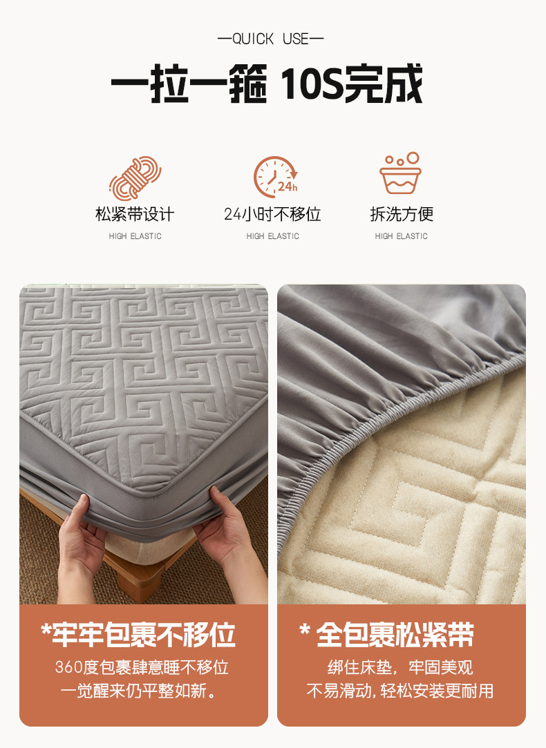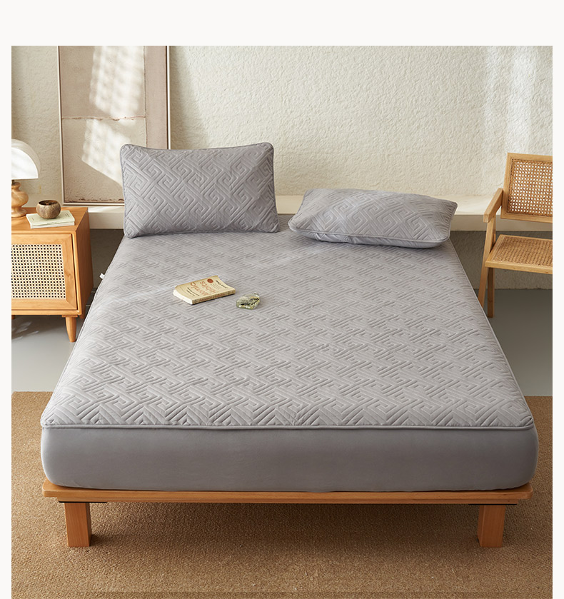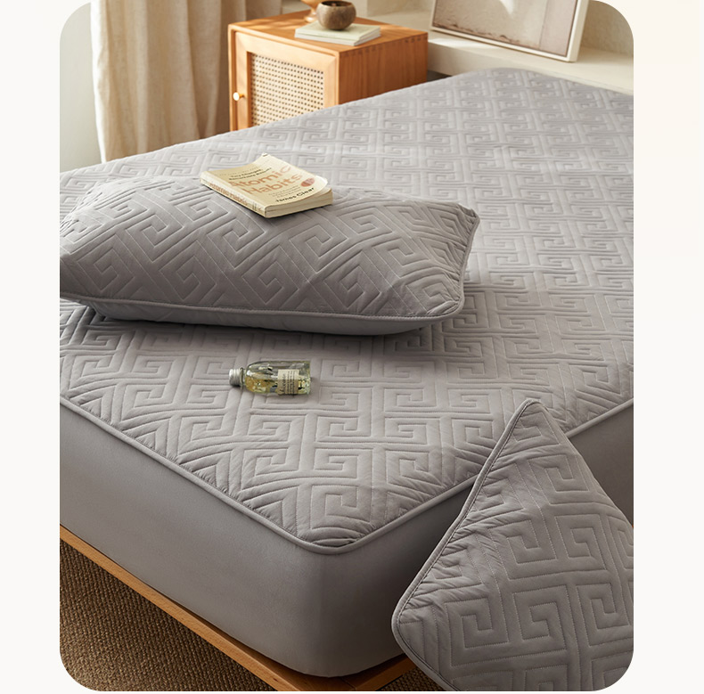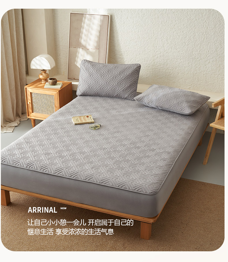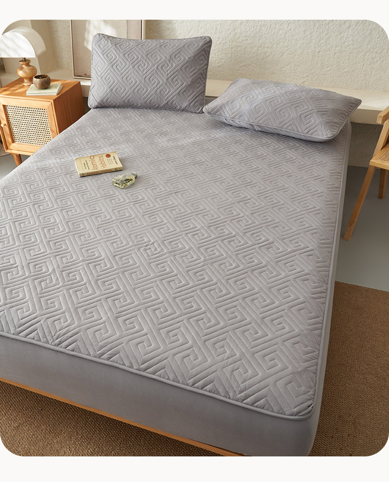 鑫琪莱家纺 2026新款水洗棉绗绣夹棉床笠 夹棉床笠-浅灰