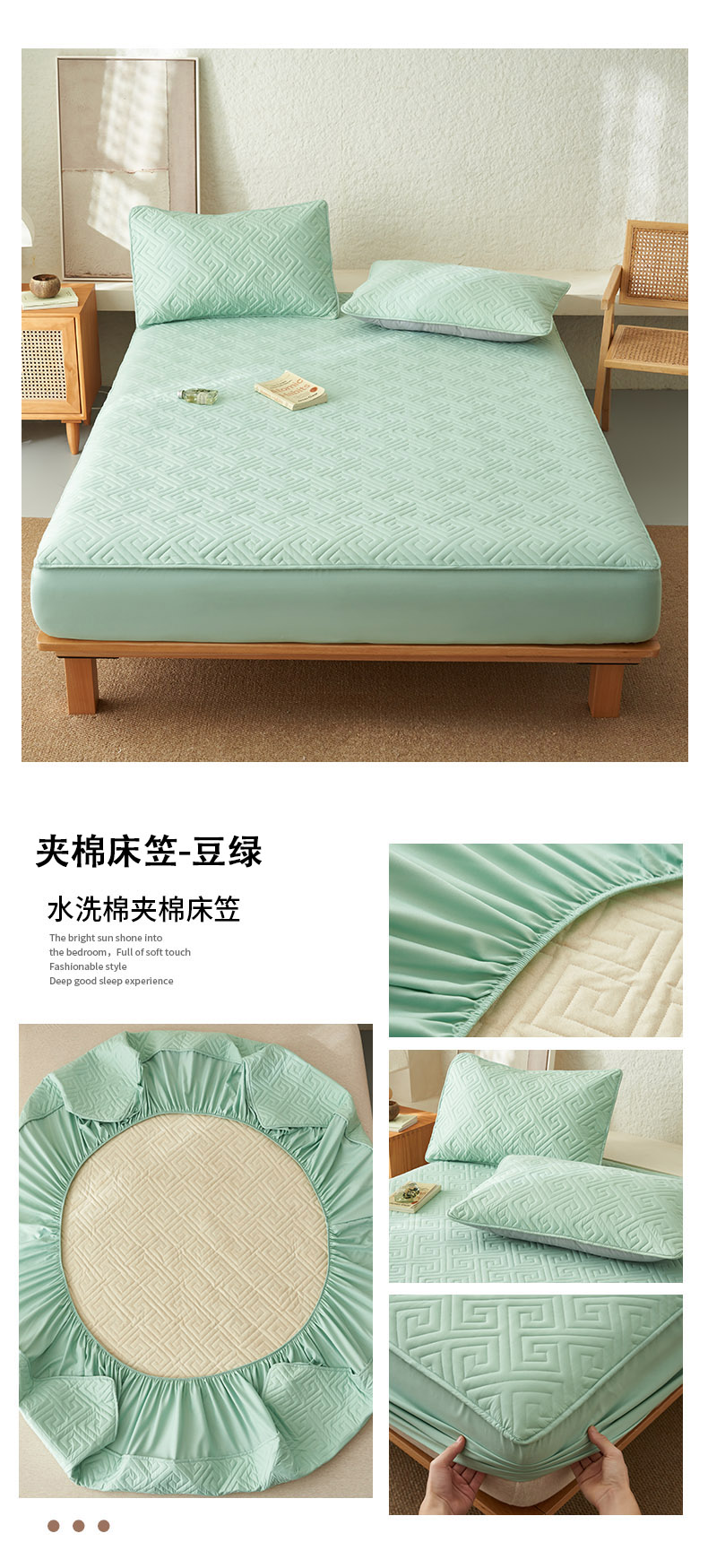 (总)鑫琪莱家纺 2026新款水洗棉绗绣夹棉床笠,夹棉床笠-豆绿,夹棉床笠-粉玉,夹棉床笠-米白,夹棉床笠-柠檬黄,夹棉床笠-浅灰,夹棉床笠-深灰,夹棉床笠-烟熏紫
