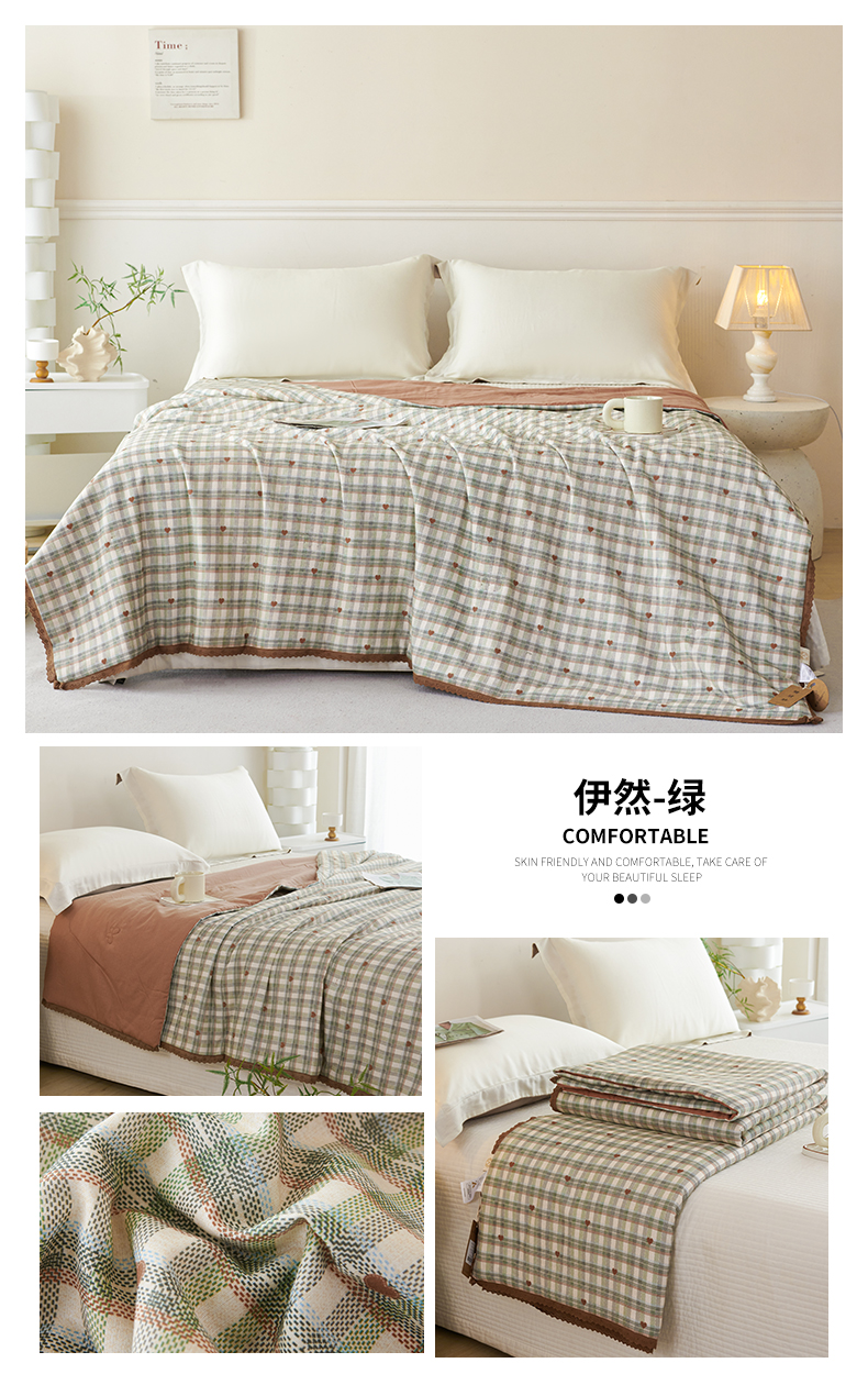 瑞米家居 2025新款A类全棉双层纱印花夏被 伊然-绿