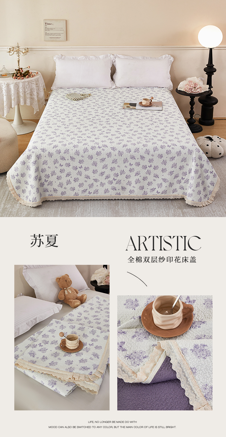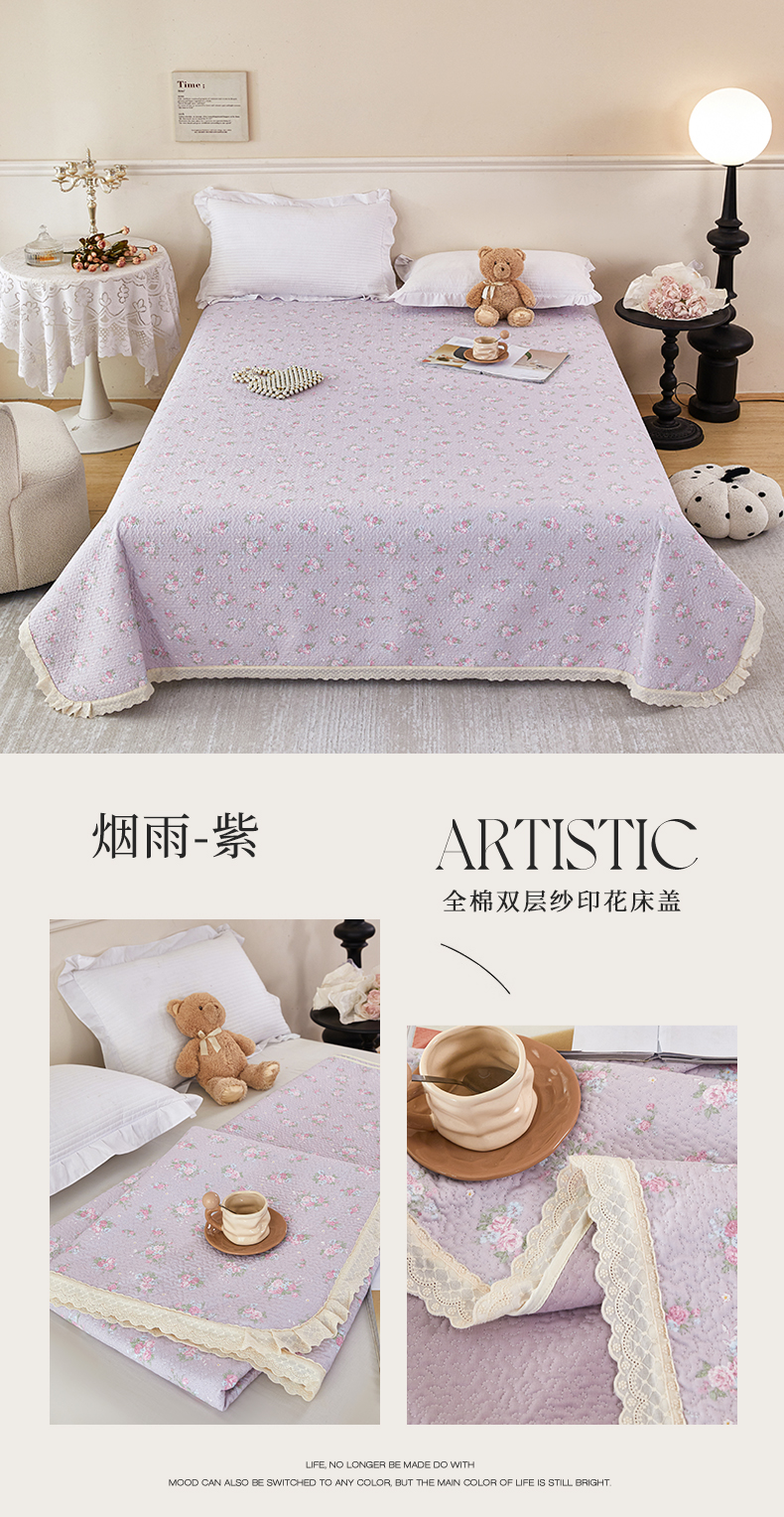 商品名称:(总)瑞米家居 2025新款全棉双层纱印花床盖
