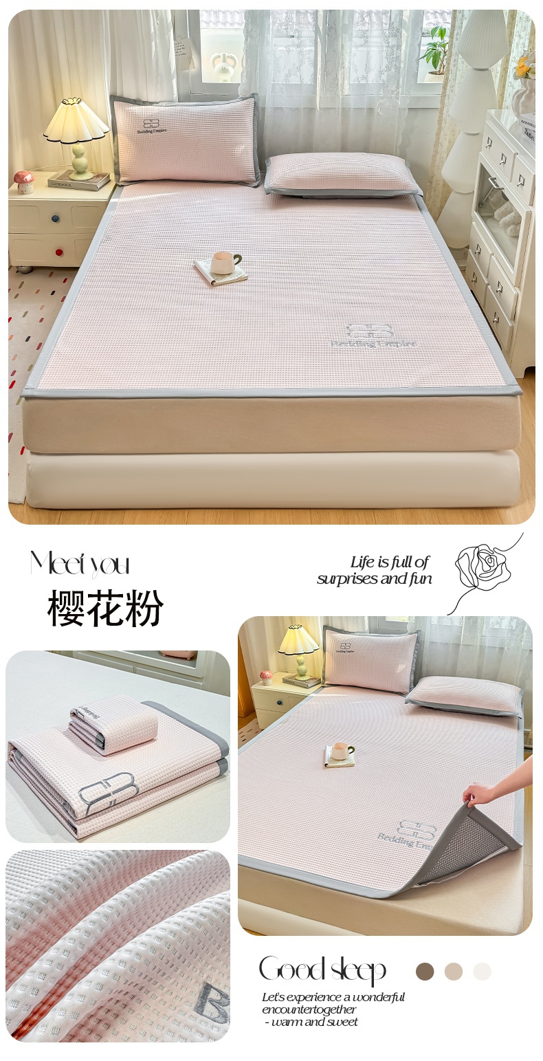 商品名称:德比尔斯 2025新款乙纶华夫格刺绣熊猫漫野冰豆豆凉席-漫野系列 樱花粉-床席款