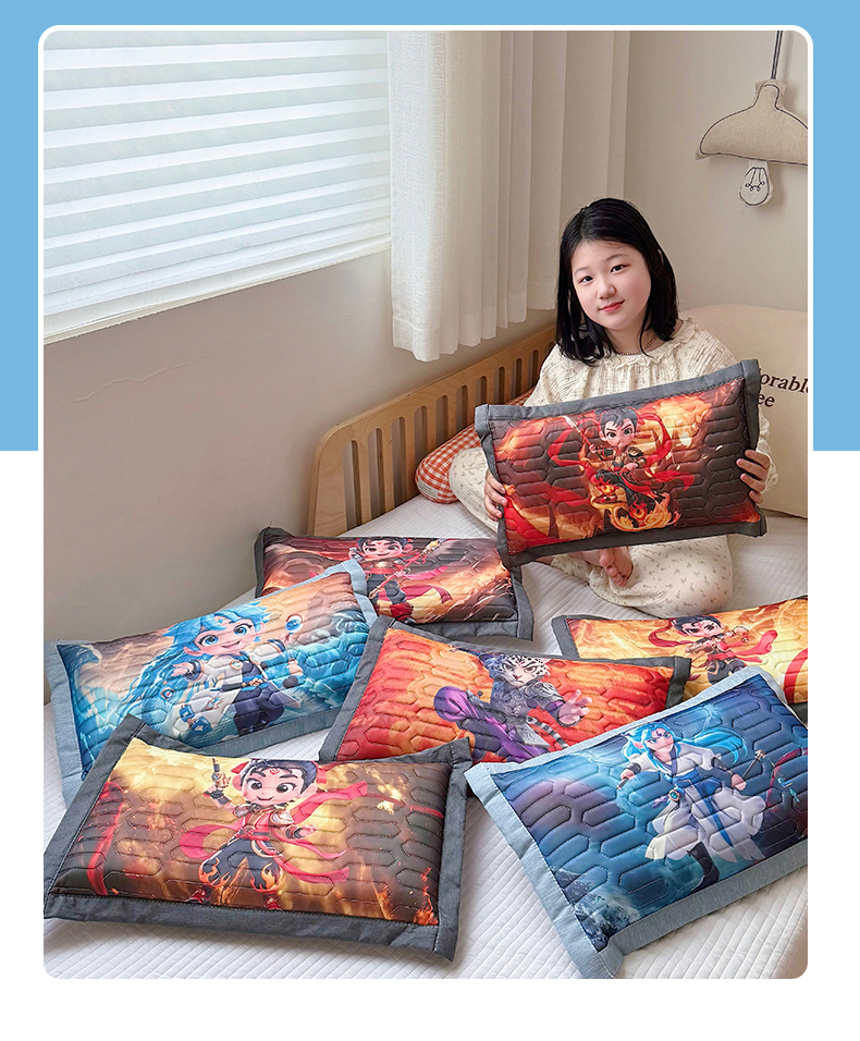 • 91家纺网 家纺一手货源 找家纺 纽乐家纺 2025新款卡通5D数码印花哪吒周边儿童冰丝乳胶凉枕枕套枕芯 哪吒-6