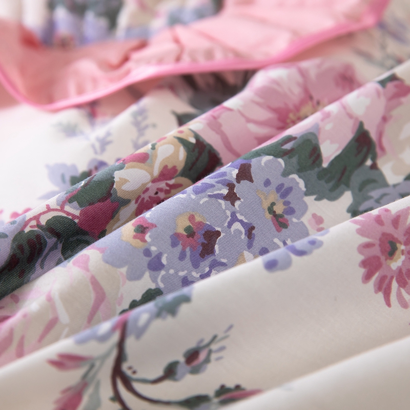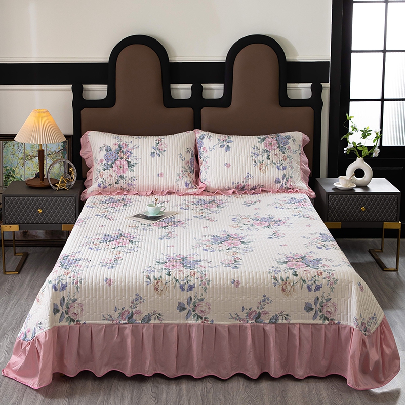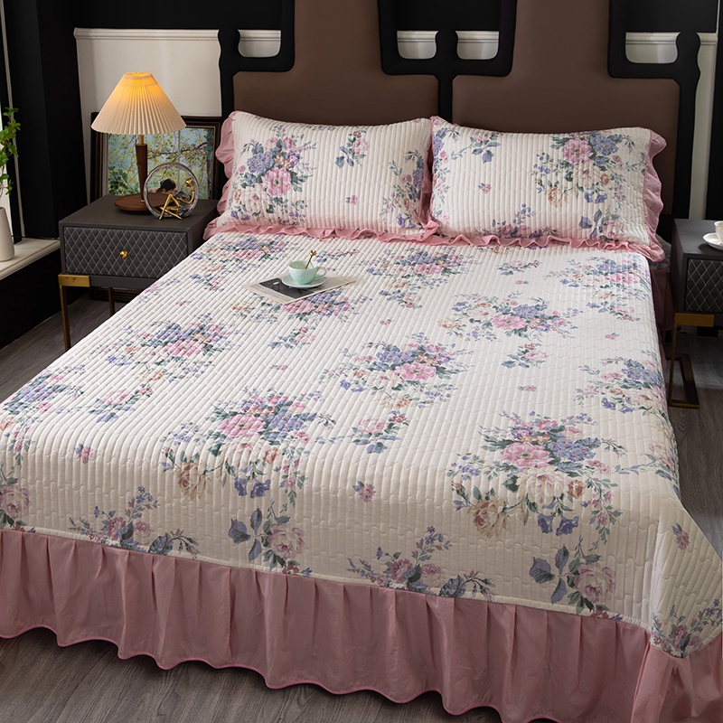 商品名称:木兰花2025新款全棉印花法式韩版花边夹棉床盖床裙款四件套 芳华粉
