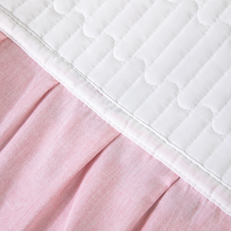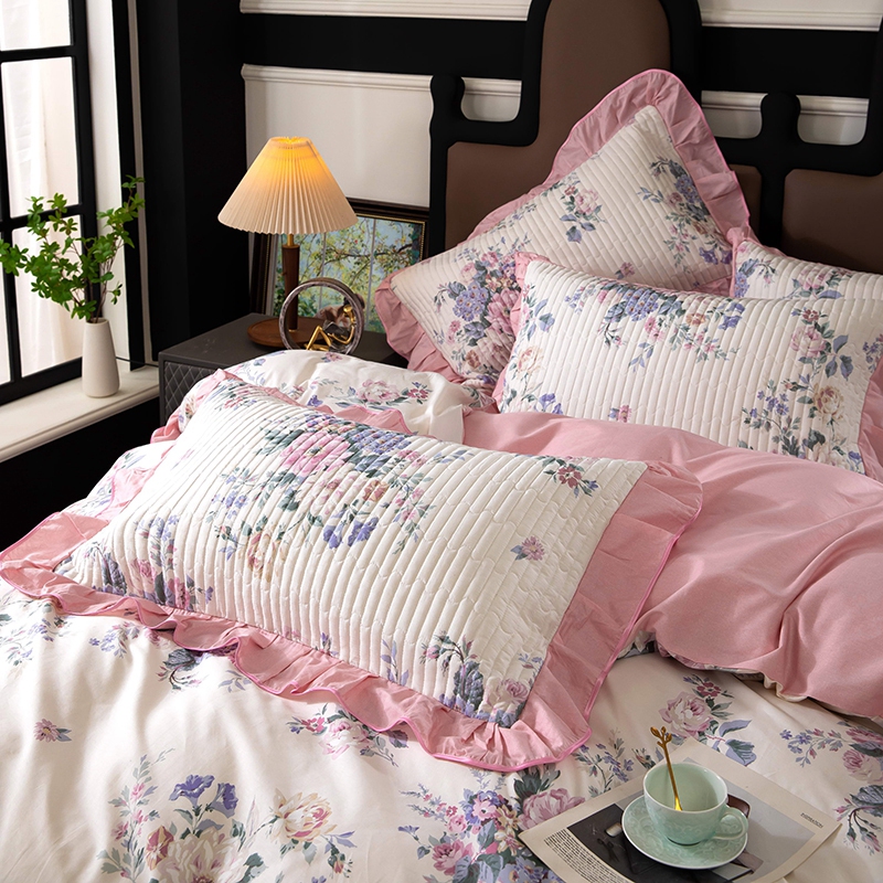 木兰花2025新款全棉印花法式韩版花边夹棉床盖床裙款四件套 芳华粉
