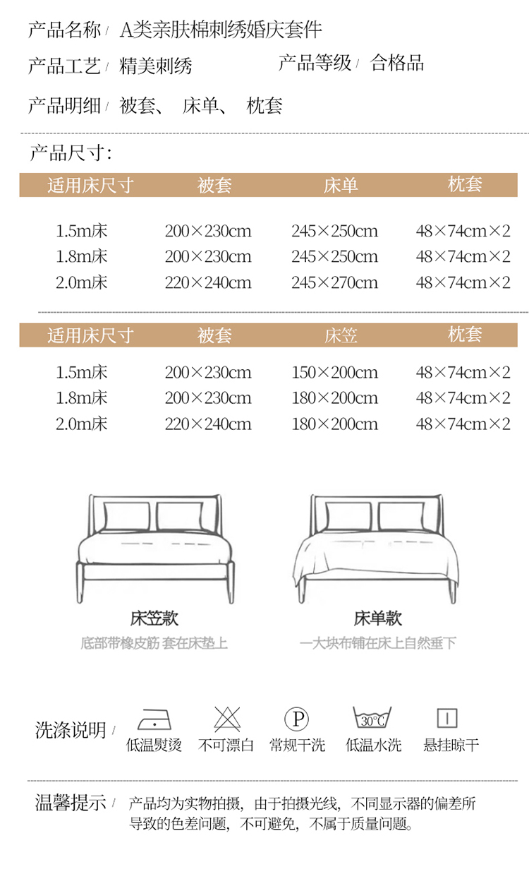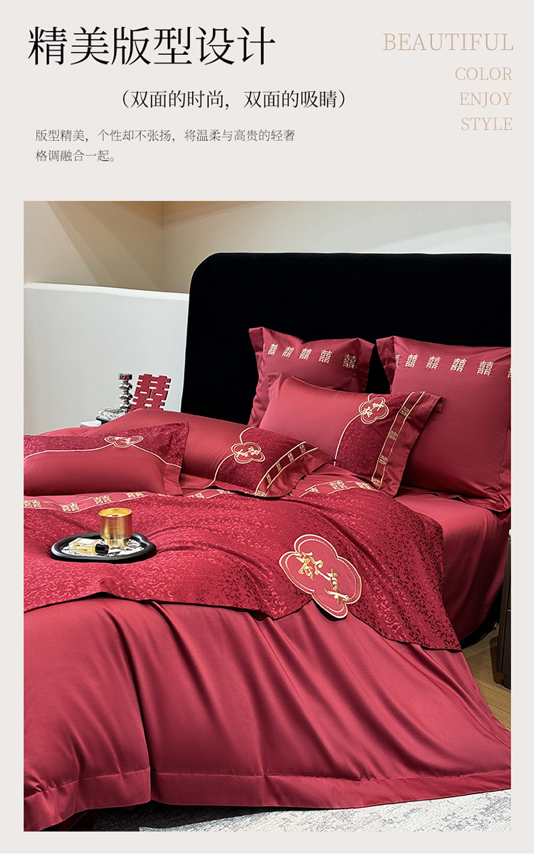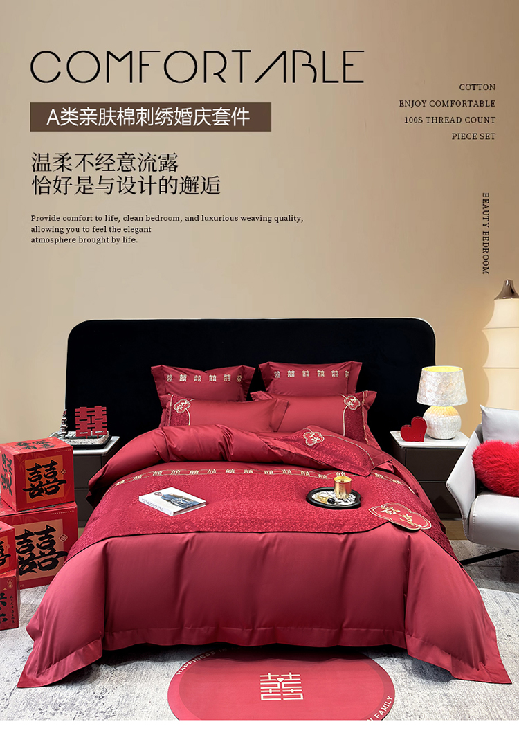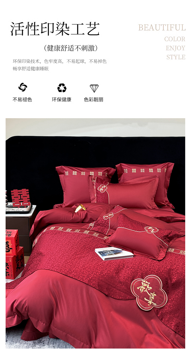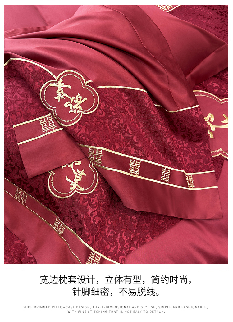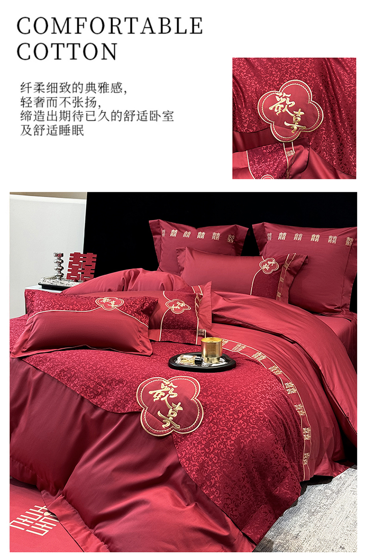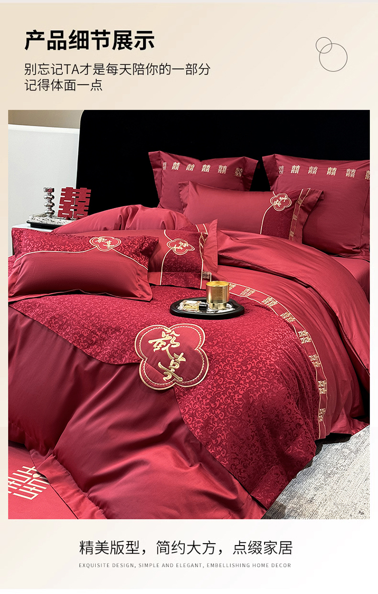 商品名称:2025新款婚庆四件套亲肤棉刺绣磨毛婚庆四件套 禧时