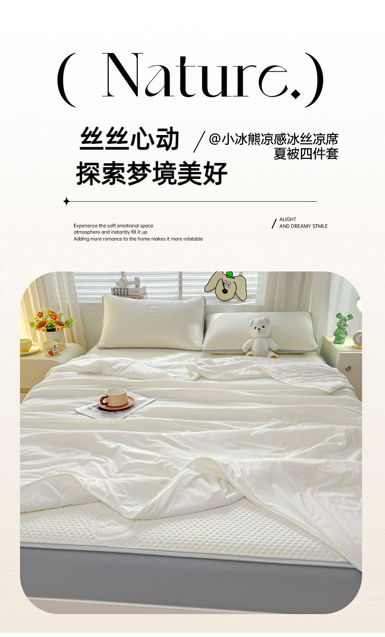 当前位置: 91家纺网 > 商品网购 > 床品套件 > 四件套 > 夏被四件套 > 慕木家纺 2025新款小冰熊凉感冰丝凉席夏被四件套 凉席款 奶昔白