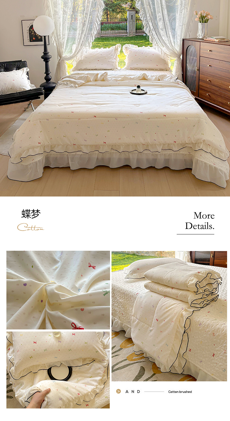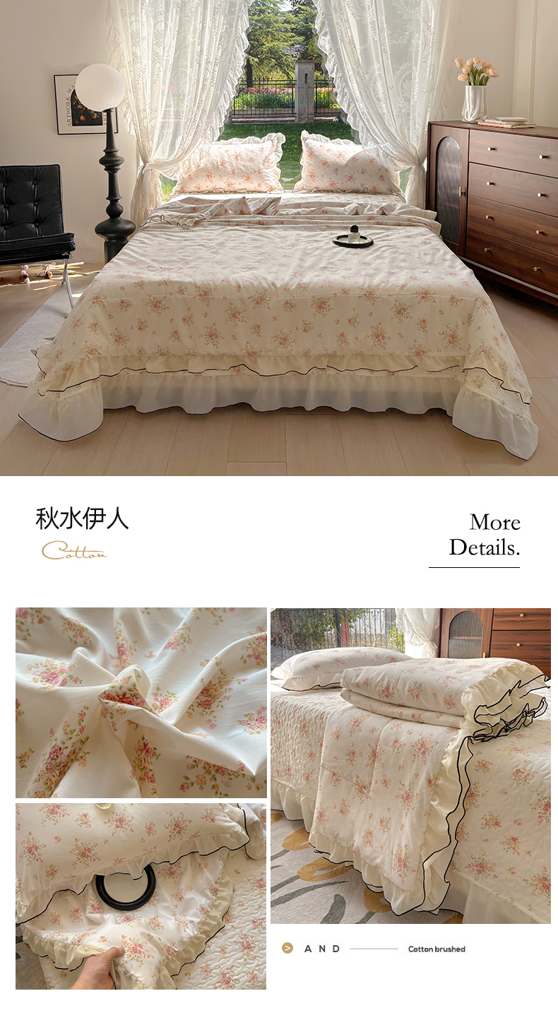 被子 > 夏被 > (总)韩秀 2025水洗棉夏被四件套夹棉韩版花边夏被小清新针织棉小碎花皱皱棉双层纱软糯感夏凉被空调被泡泡纱双层纱被子四季跑量款