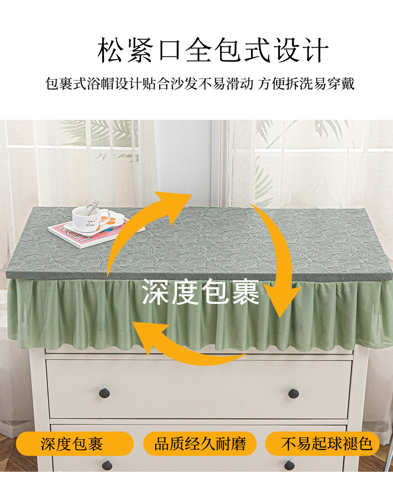 商品名称:2025新款防尘防滑斗柜套裙边-小树叶系列 豆绿