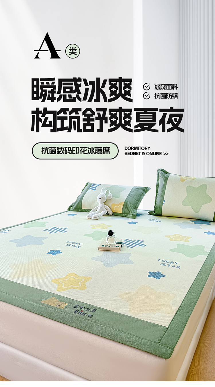当前位置: 91家纺网 > 商品网购 > 床上用品 > 凉席 > 藤席 > 2025新款A类抗菌数码印花冰藤席 星尚璀璨