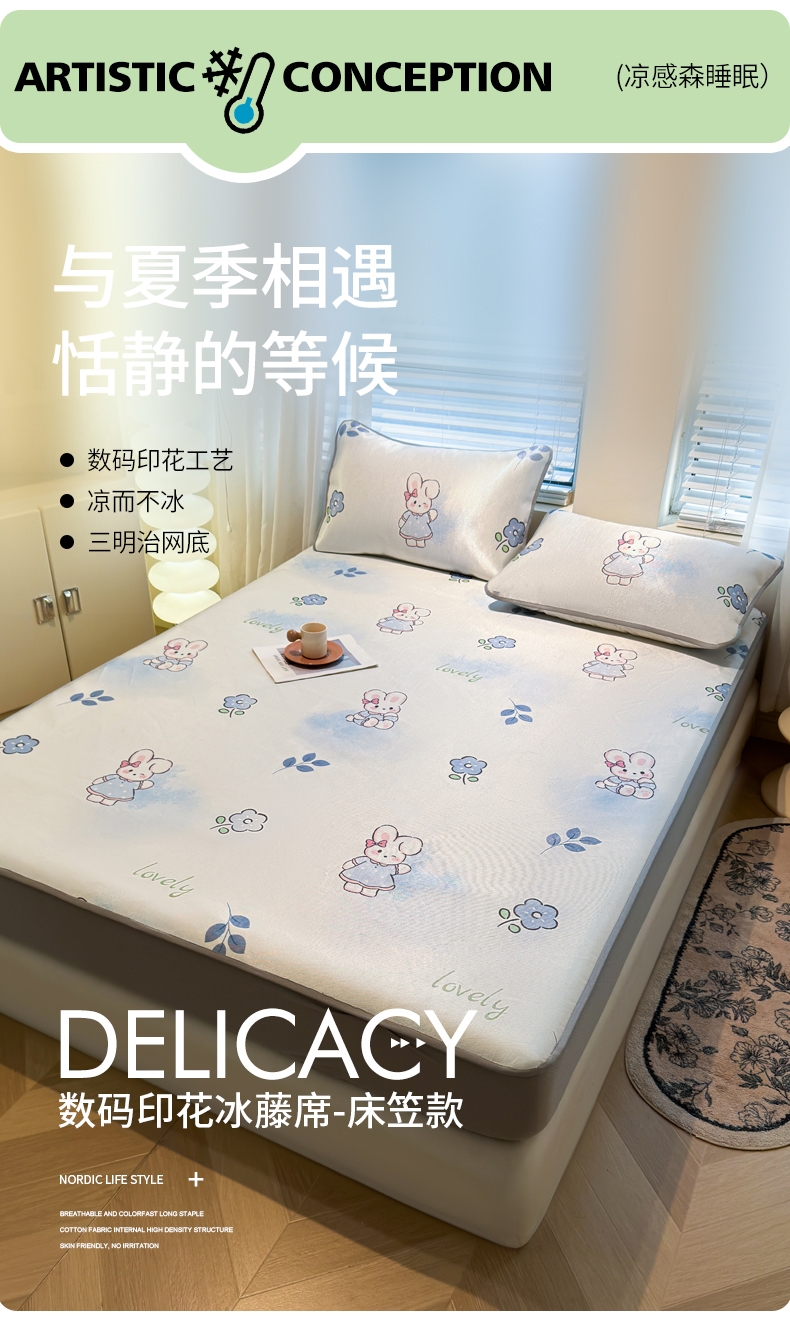 当前位置: 91家纺网 > 商品网购 > 床上用品 > 凉席 > 凉席套件 > LIFE.丽芙 2025春夏季新品数码印花冰藤凉席席子床笠三件套加厚冰丝软藤席小清新印花床罩单件(风格二) 星辰