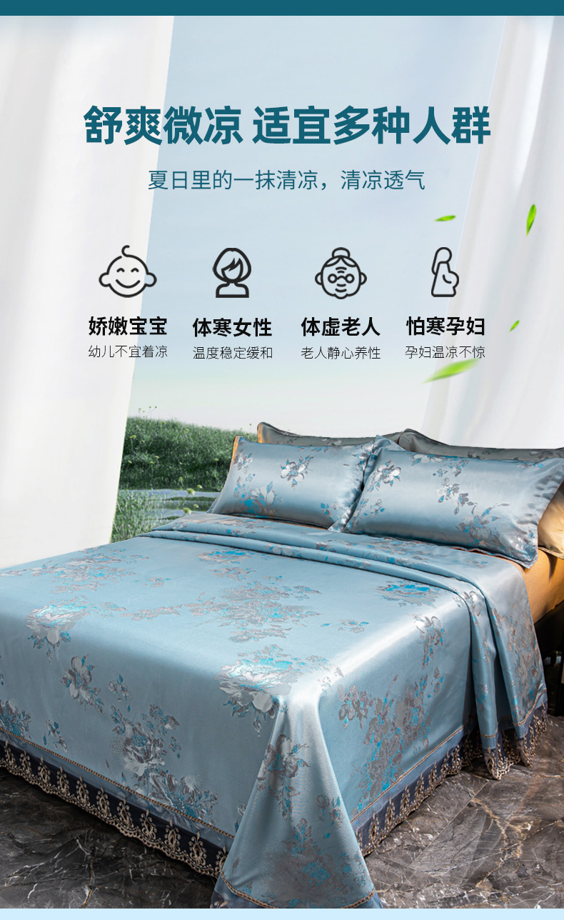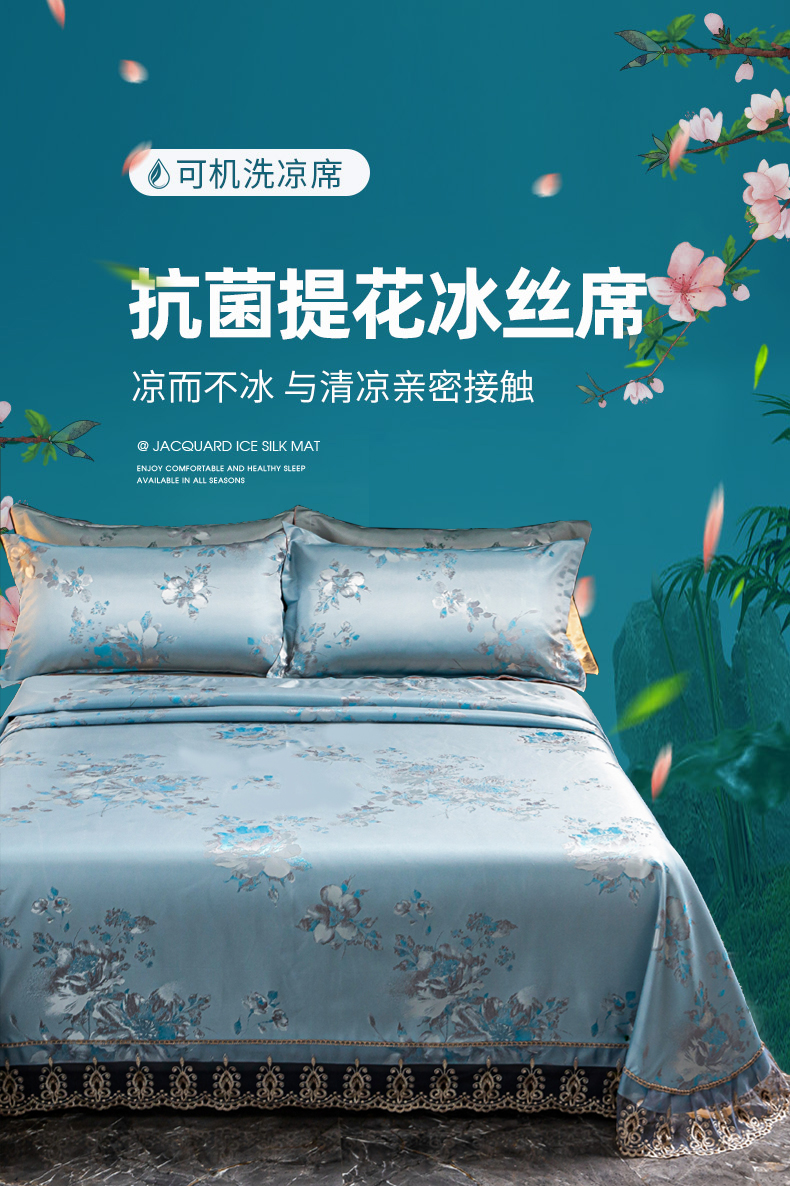 当前位置: 91家纺网 > 商品网购 > 床上用品 > 凉席 > 凉席套件 > 席皇后 2025新款可机洗抗菌提花冰丝席 牡丹蓝