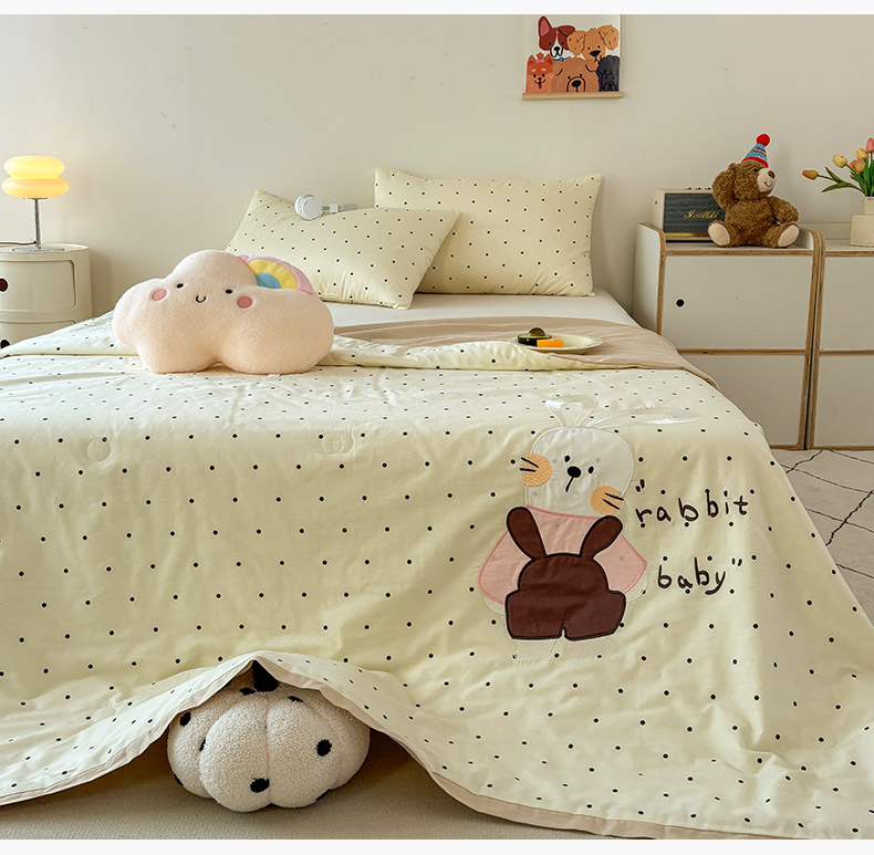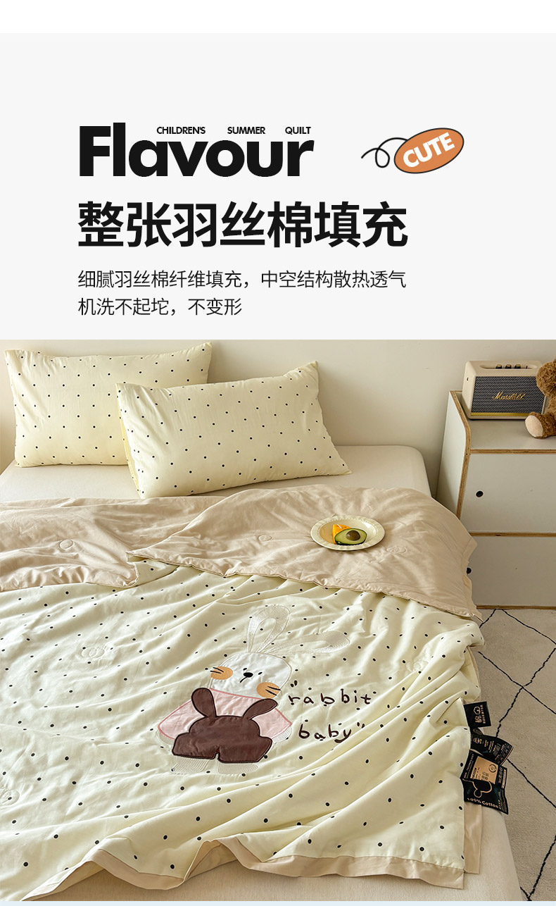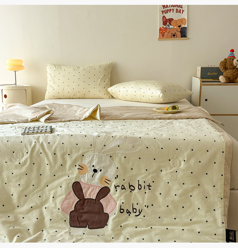 鸣升家纺 2025新款精梳全棉纯棉绣花夏被夏凉被空调被 可爱小兔