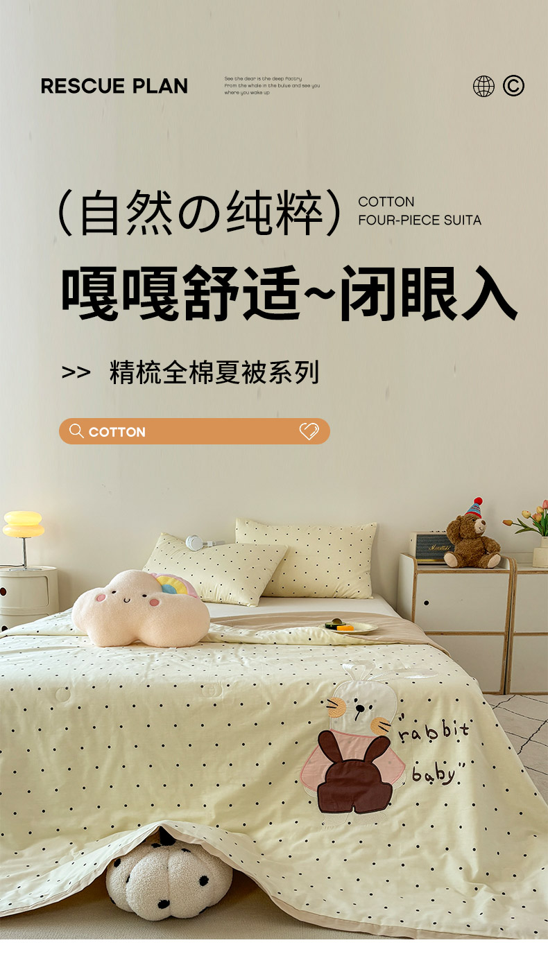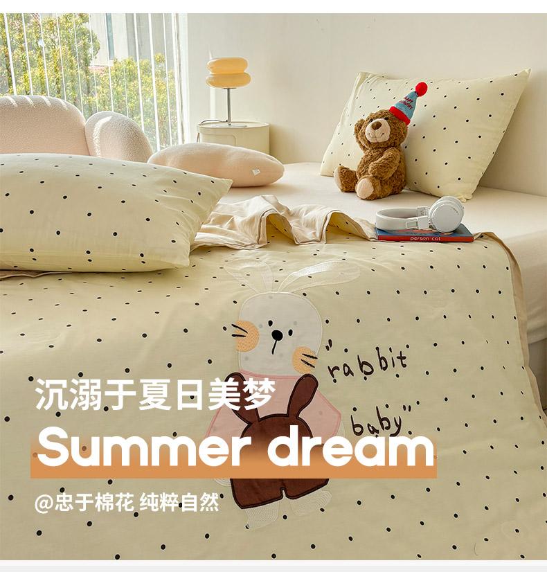 商品名称:鸣升家纺 2025新款精梳全棉纯棉绣花夏被夏凉被空调被 可爱小兔