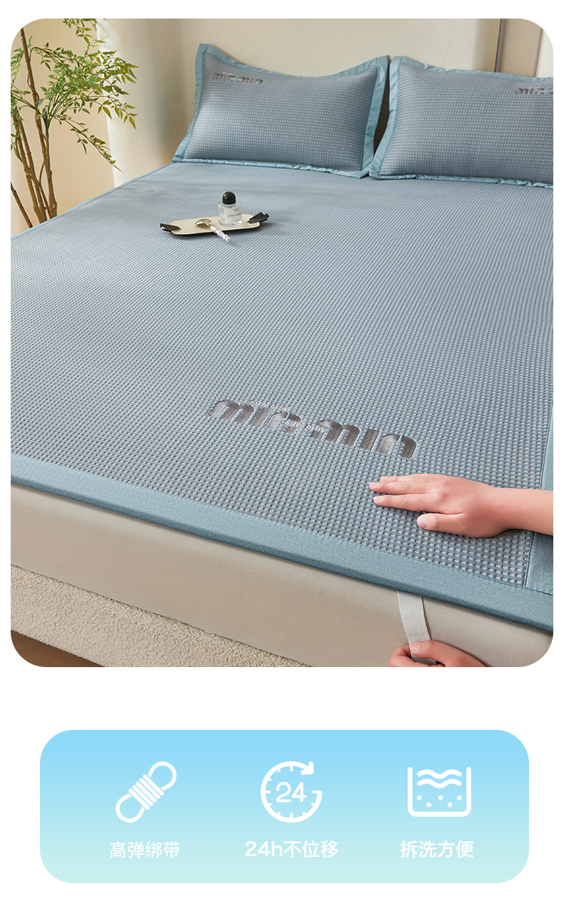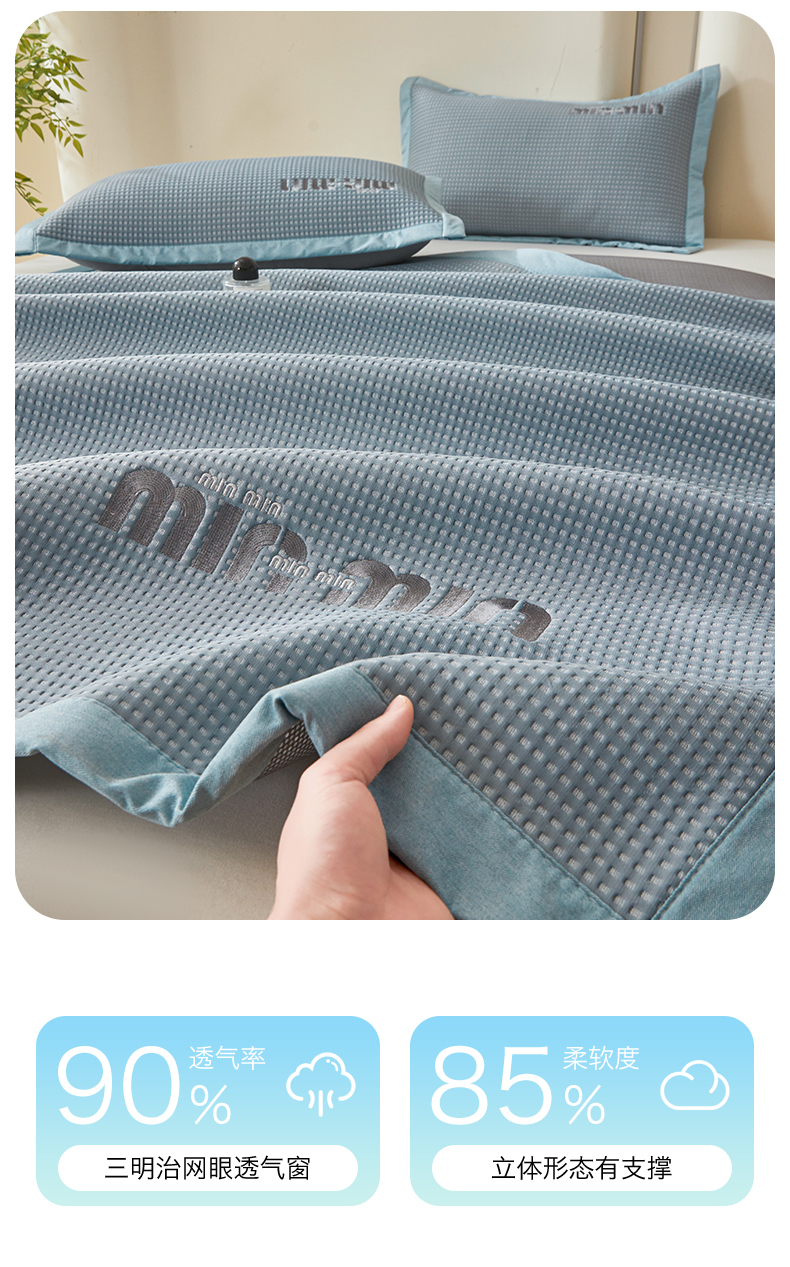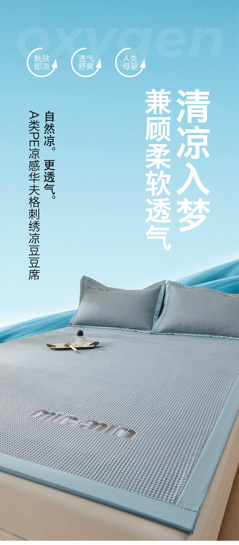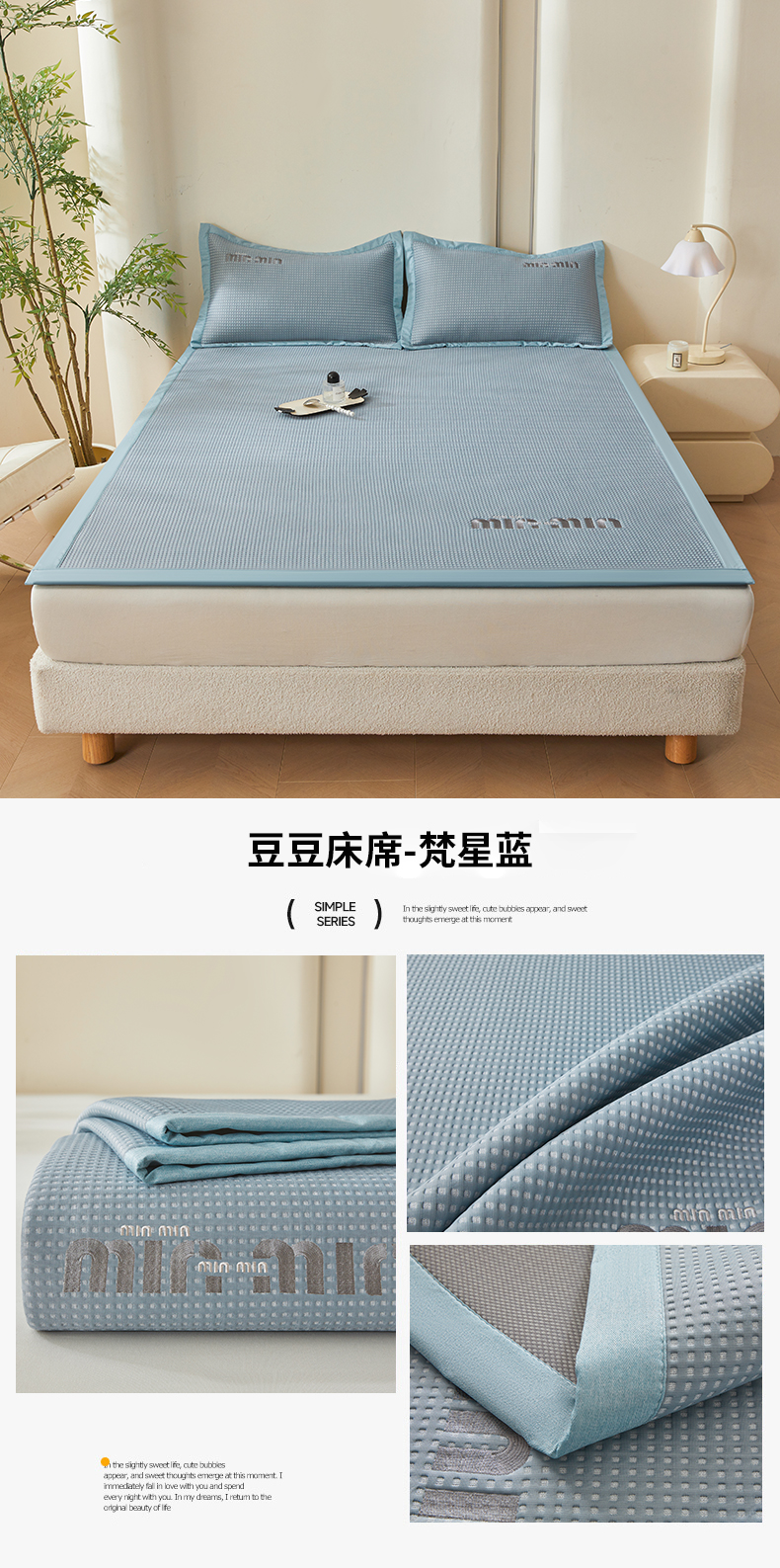 商品名称:布卢姆床垫 2025新款A类乙纶PE刺绣凉豆豆席豆豆床席凉席 豆豆床席-梵星蓝