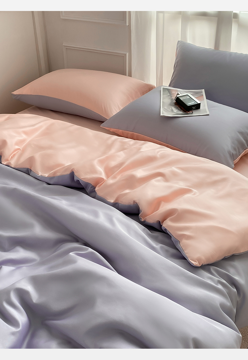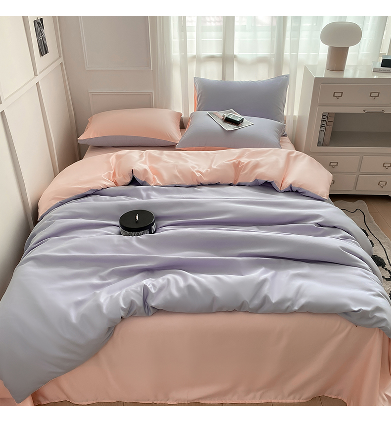 当前位置: 91家纺网 > 商品网购 > 床品套件 > 四件套 > 水洗真丝四件套 > (提供买家秀 爆款花型 不断货)2025新款夏季水洗冰丝四件套水洗真丝纯色双拼风格二 奶油粉+星黛紫双拼-