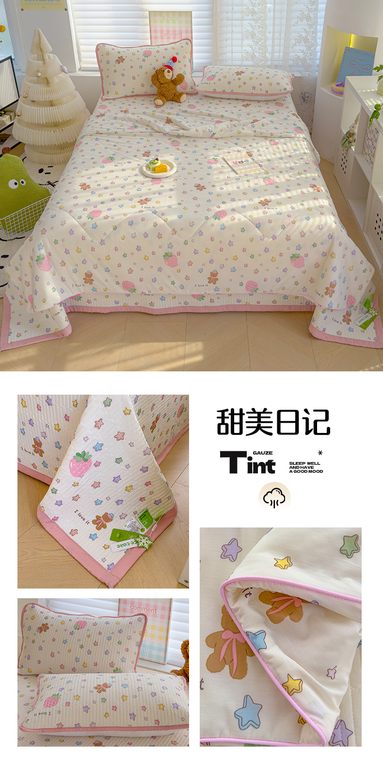 (总)赫梵茜 2025新款云朵棉毛巾绣床盖夏被被套四件套,小女孩,好朋友,恐龙,熊猫,月亮兔子,组合图仅做展示