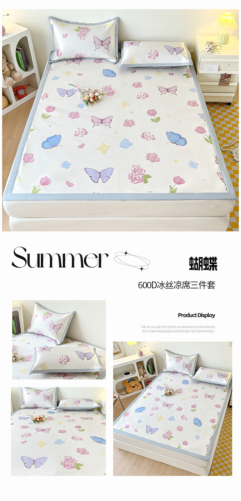 商品名称: (提供买家秀 爆款花型 不断货)2025新款600D小清新卡通印花冰丝凉席单件 可爱熊猫