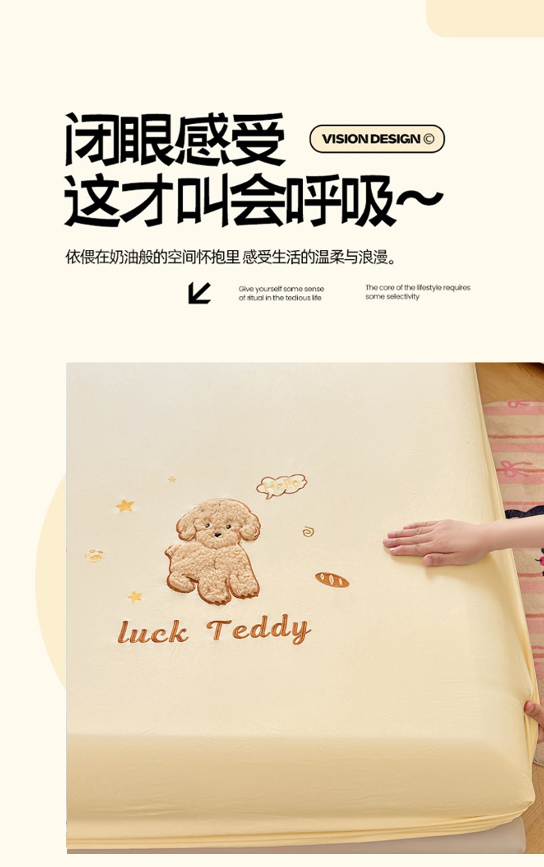 当前位置: 91家纺网 > 商品网购 > 床品套件 > 三件套 > 梦舒羽 2025春夏新款兔毛贴布绣卡通ins风水洗棉床笠学生宿舍床罩床垫保护垫三件套(带买家秀) 泰迪卷卷-芝士黄
