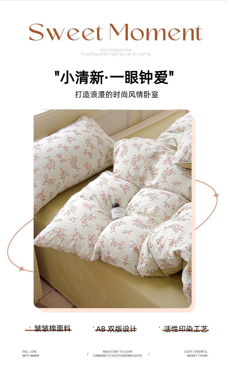 当前位置: 91家纺网 > 商品网购 > 床品套件 > 四件套 > 其它四件套 > 蓝淋家纺 2025新款亲肤舒适皱皱棉印花四件套 浪漫定义-蓝