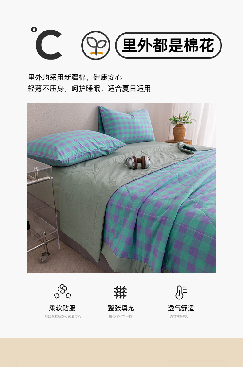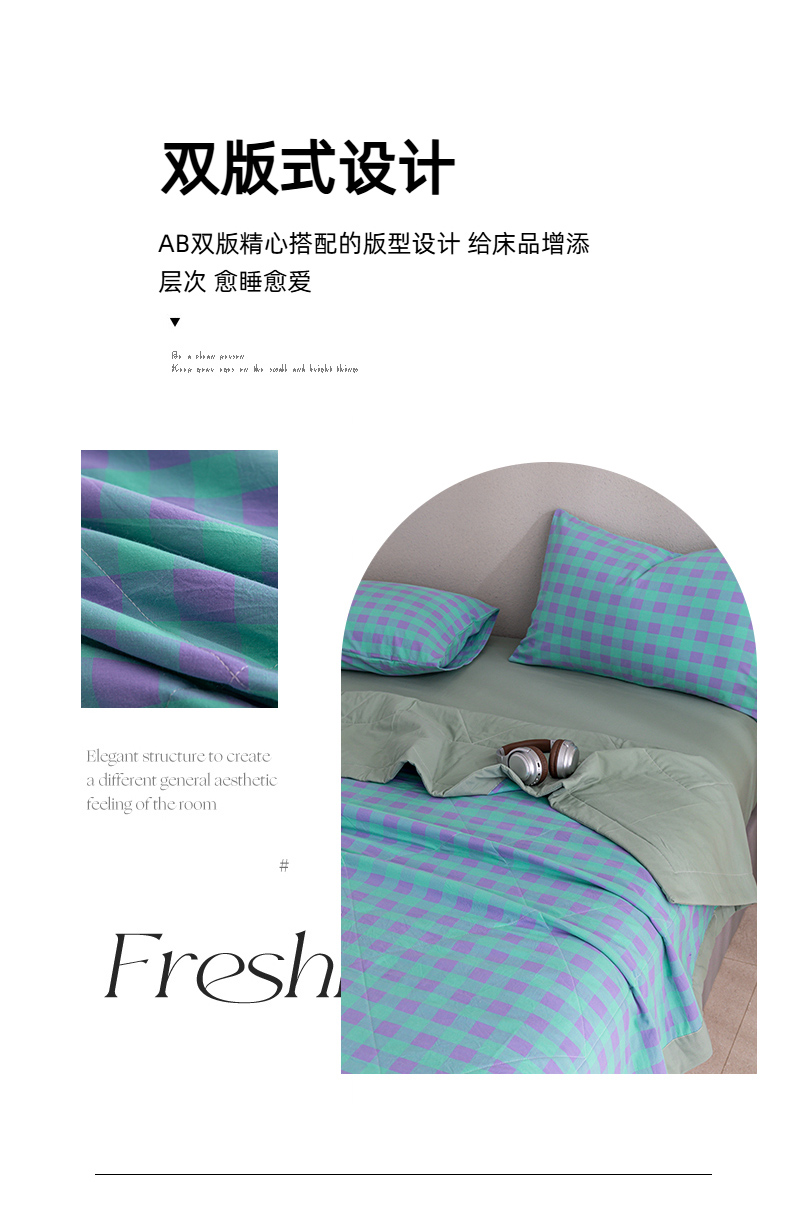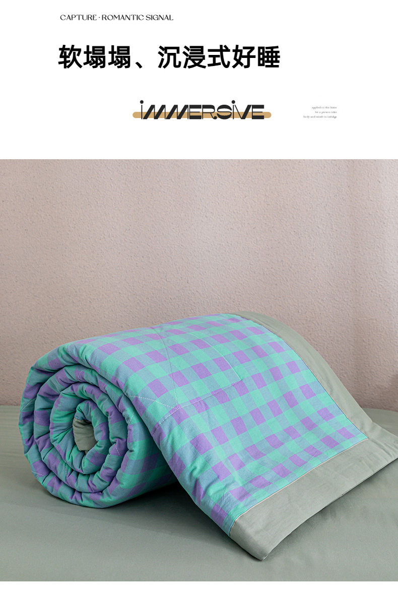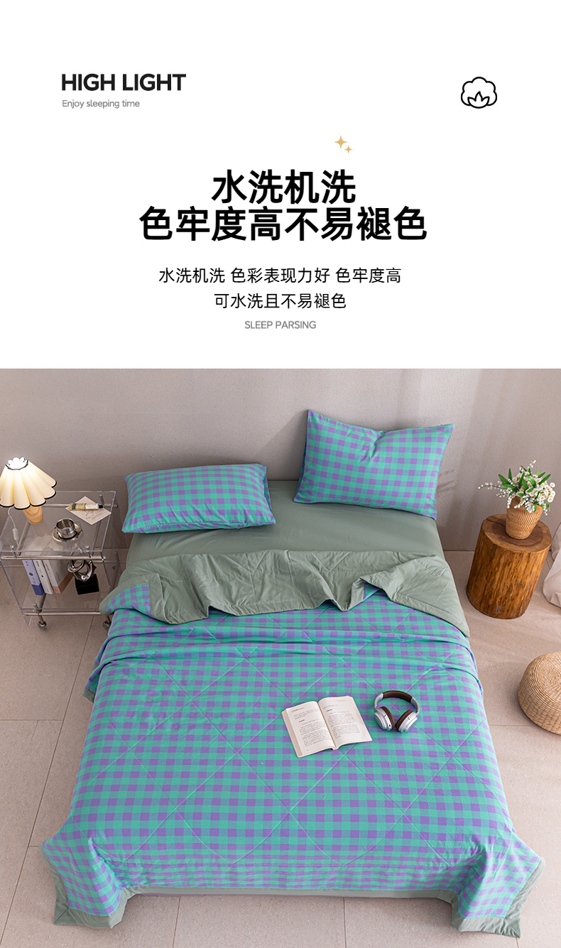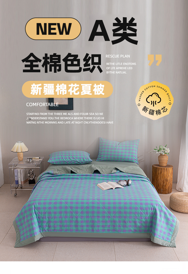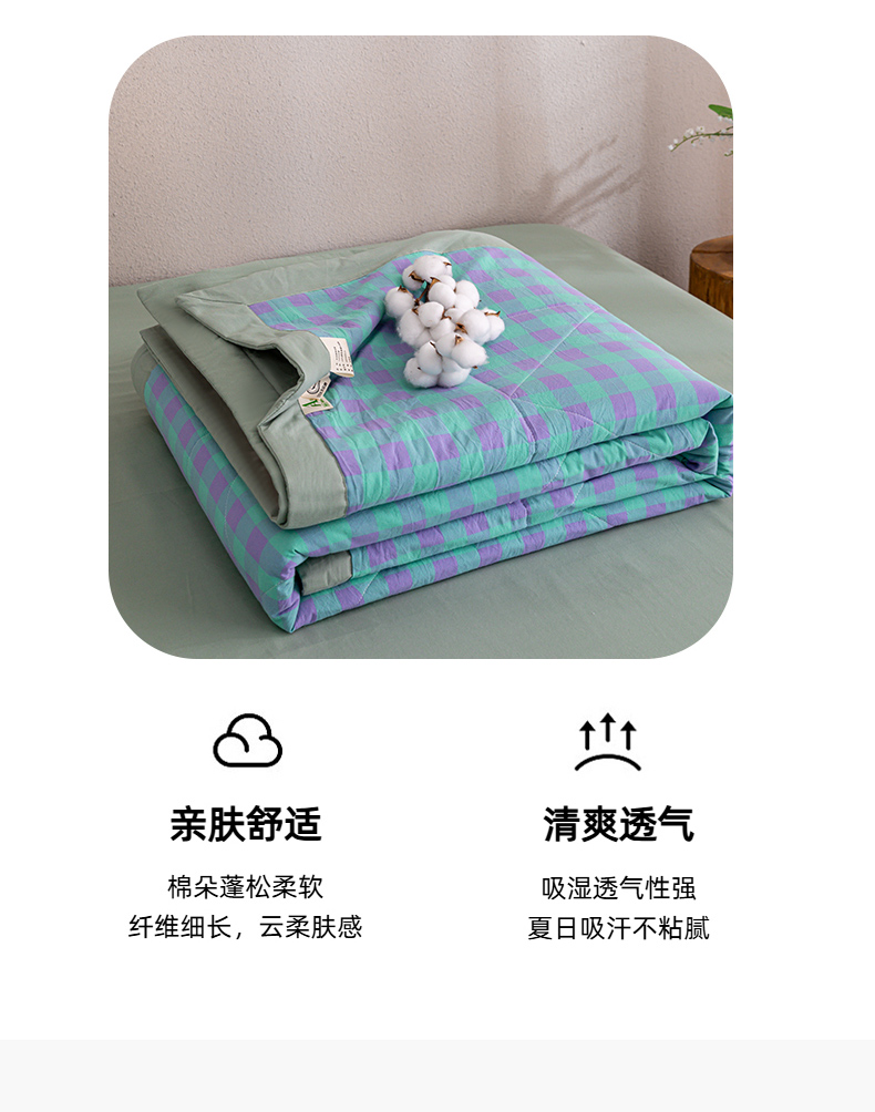 天瑜家纺 2025新款色织全棉水洗棉棉花夏被 绿紫中格