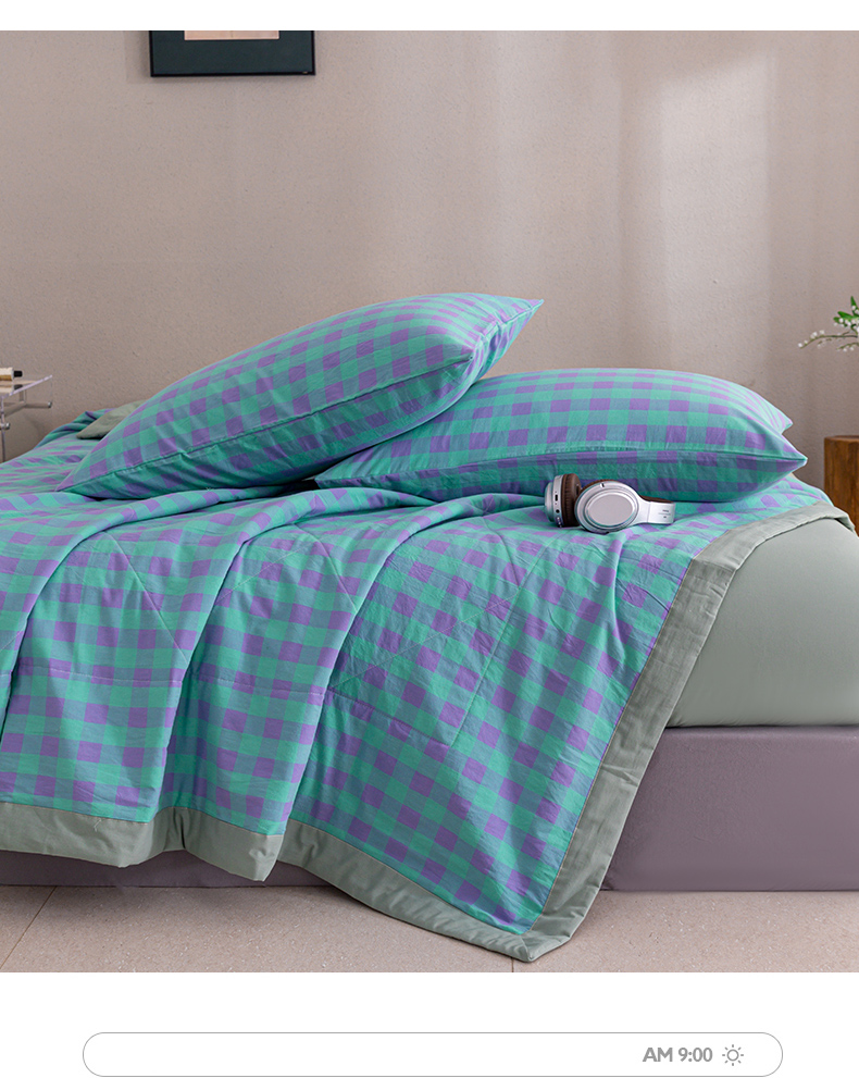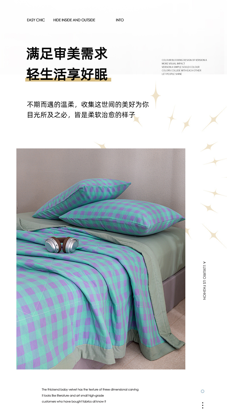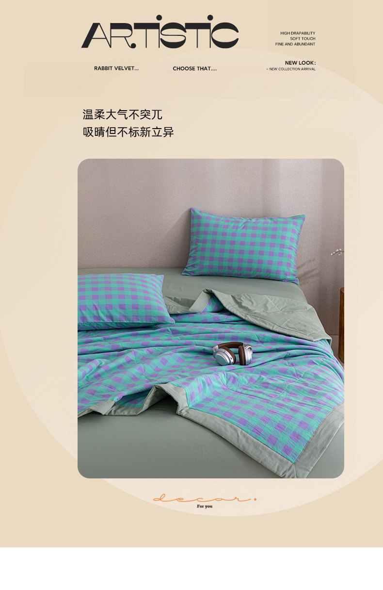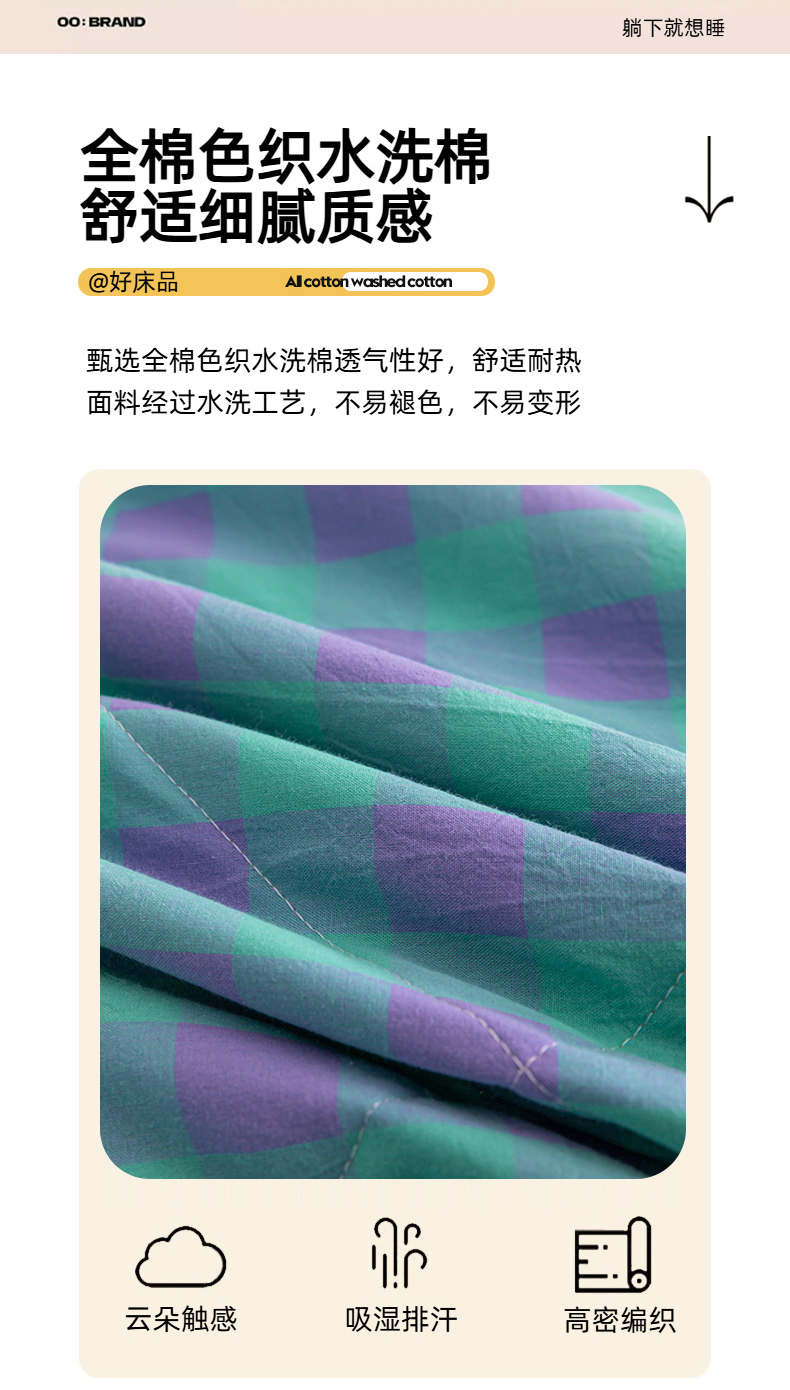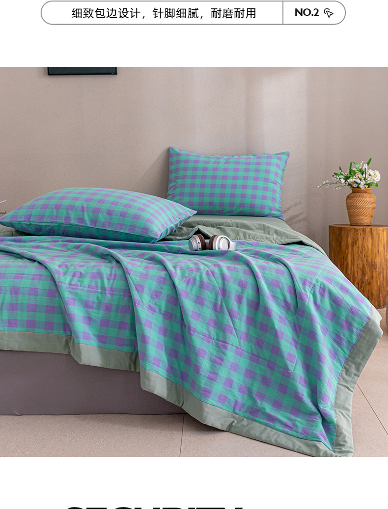 天瑜家纺 2025新款色织全棉水洗棉棉花夏被 绿紫中格