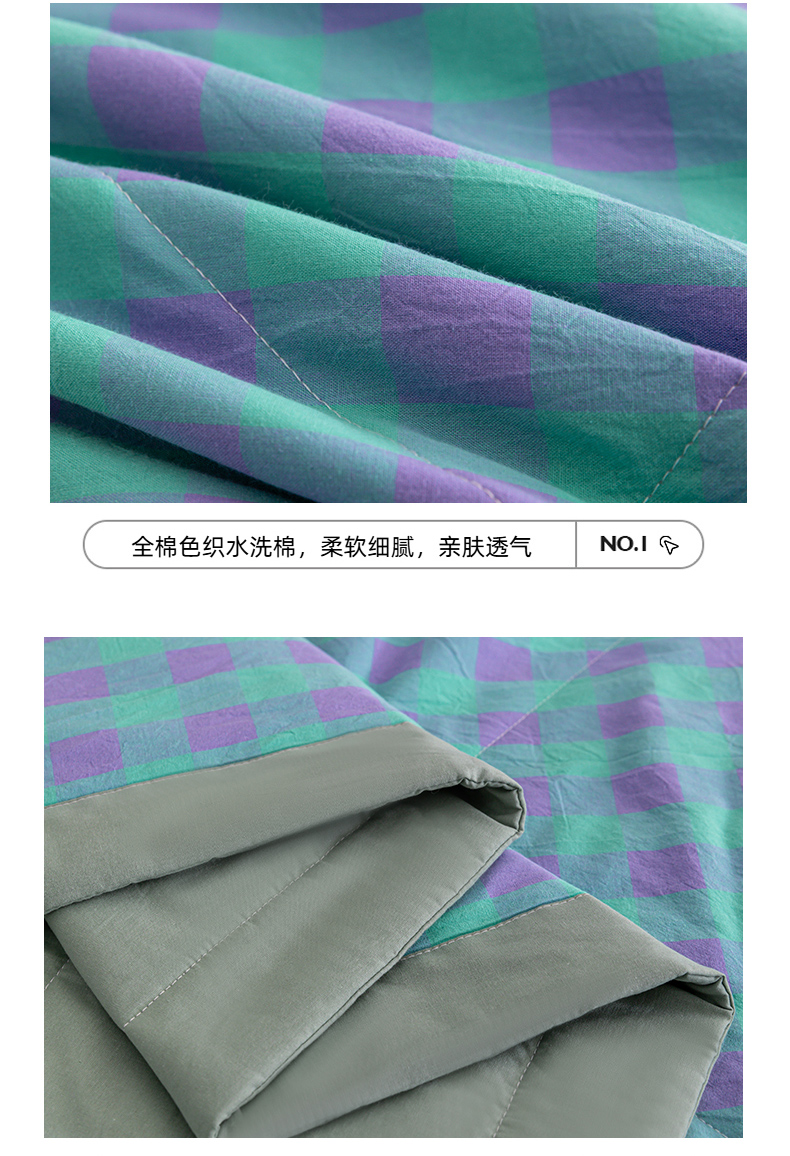 商品名称:天瑜家纺 2025新款色织全棉水洗棉棉花夏被 绿紫中格