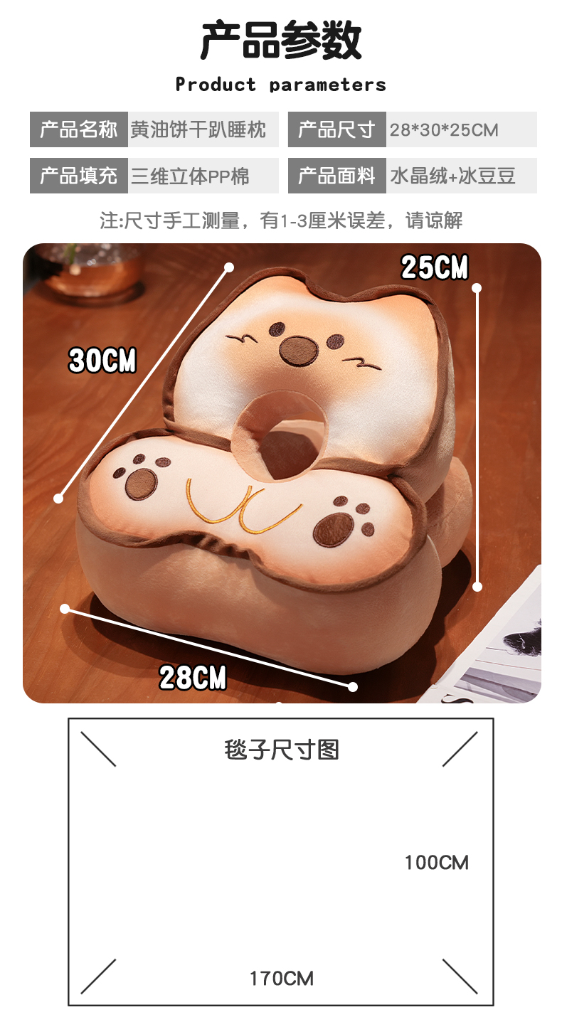 当前位置: 91家纺网 > 商品网购 > 跨境商品 > 床上用品(Bedding) > 枕头&靠垫(Bed Pillows & Positioners) > 仟亿莱 2025新款黄油饼干冰豆豆双面午睡枕枕头枕芯 冰豆豆双面饼干狗-抱枕+毯子