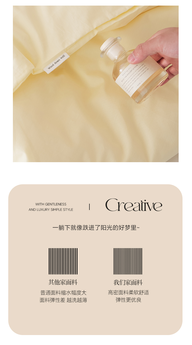 商品名称:EH家居 2025全棉半糖主义-单品系列-被套 半糖-浅鹅黄