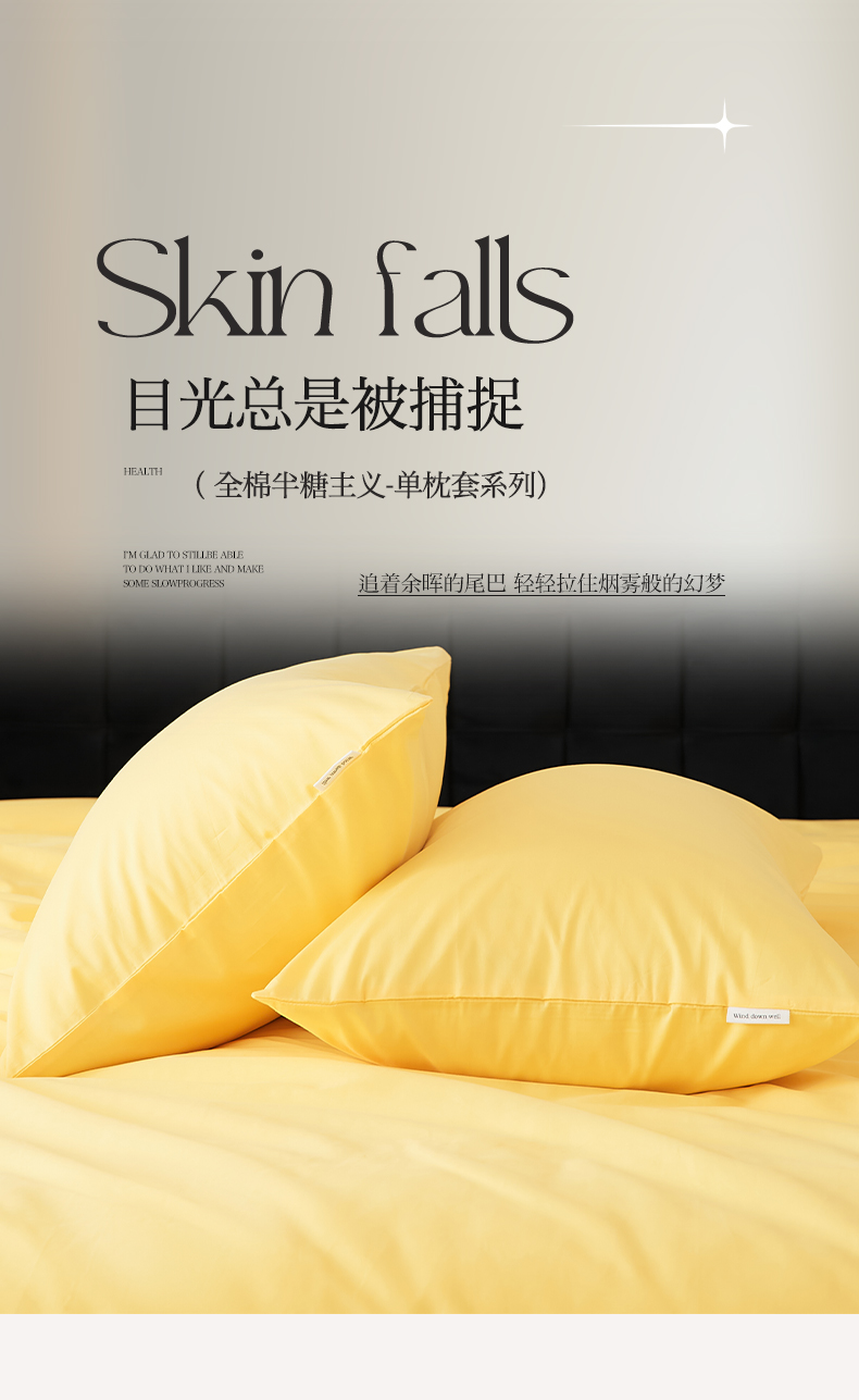 商品名称:EH家居 2025全棉半糖主义-单品系列-枕套 半糖-芒果黄