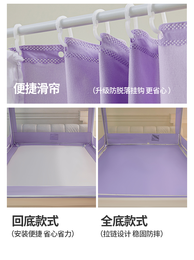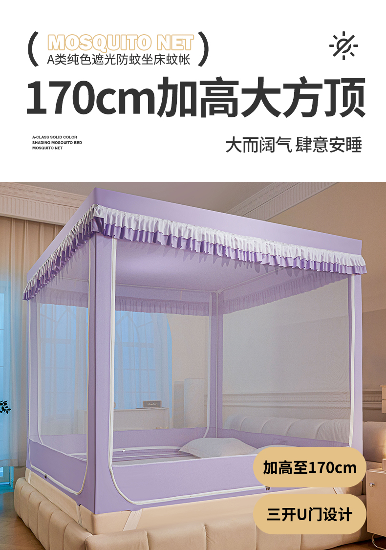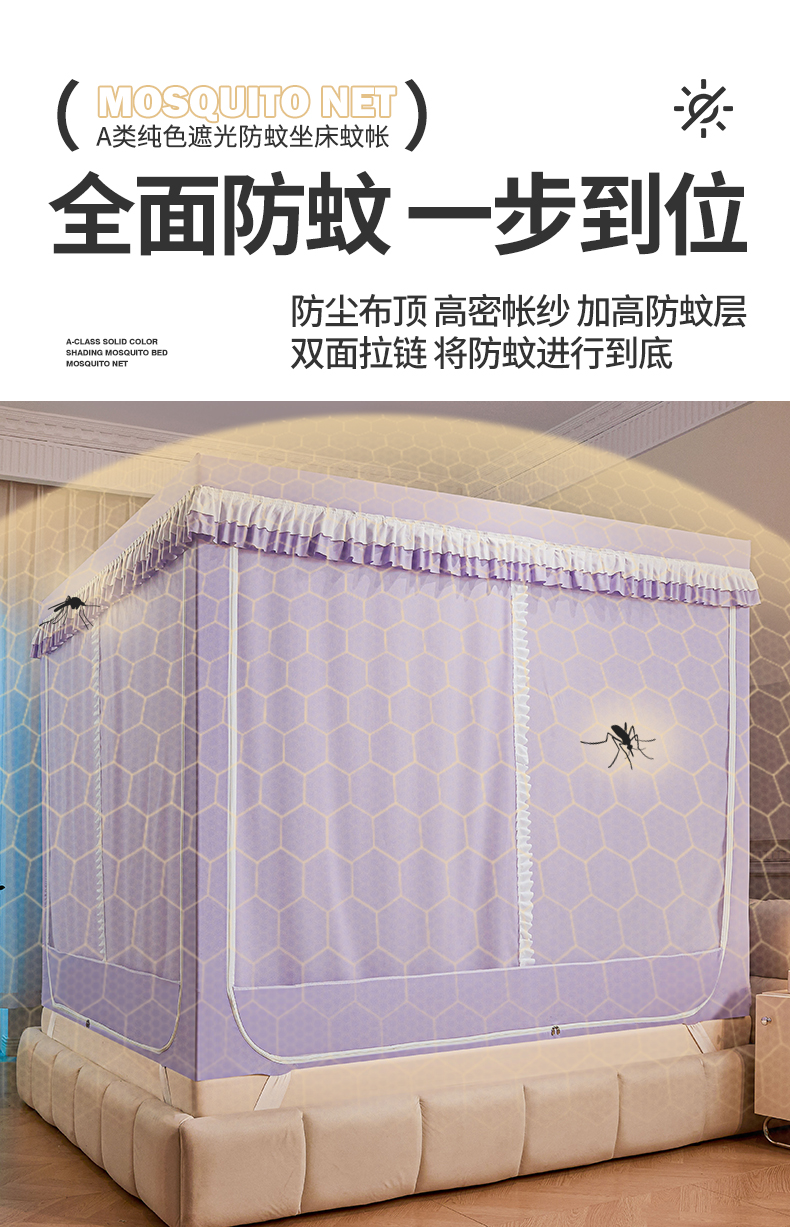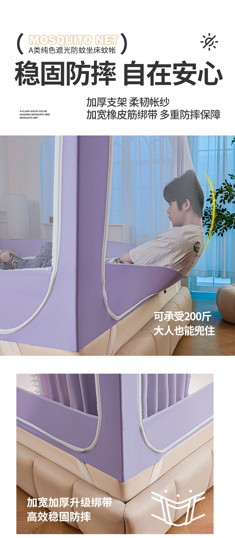 当前位置: 91家纺网 > 商品网购 > 床上用品 > 蚊帐 > 坐床式蚊帐 > 浪幔纱蚊帐 2025新款A类遮光防摔蚊帐坐床拉链全底回底纯色加厚支架 优雅紫【全底带帘款】