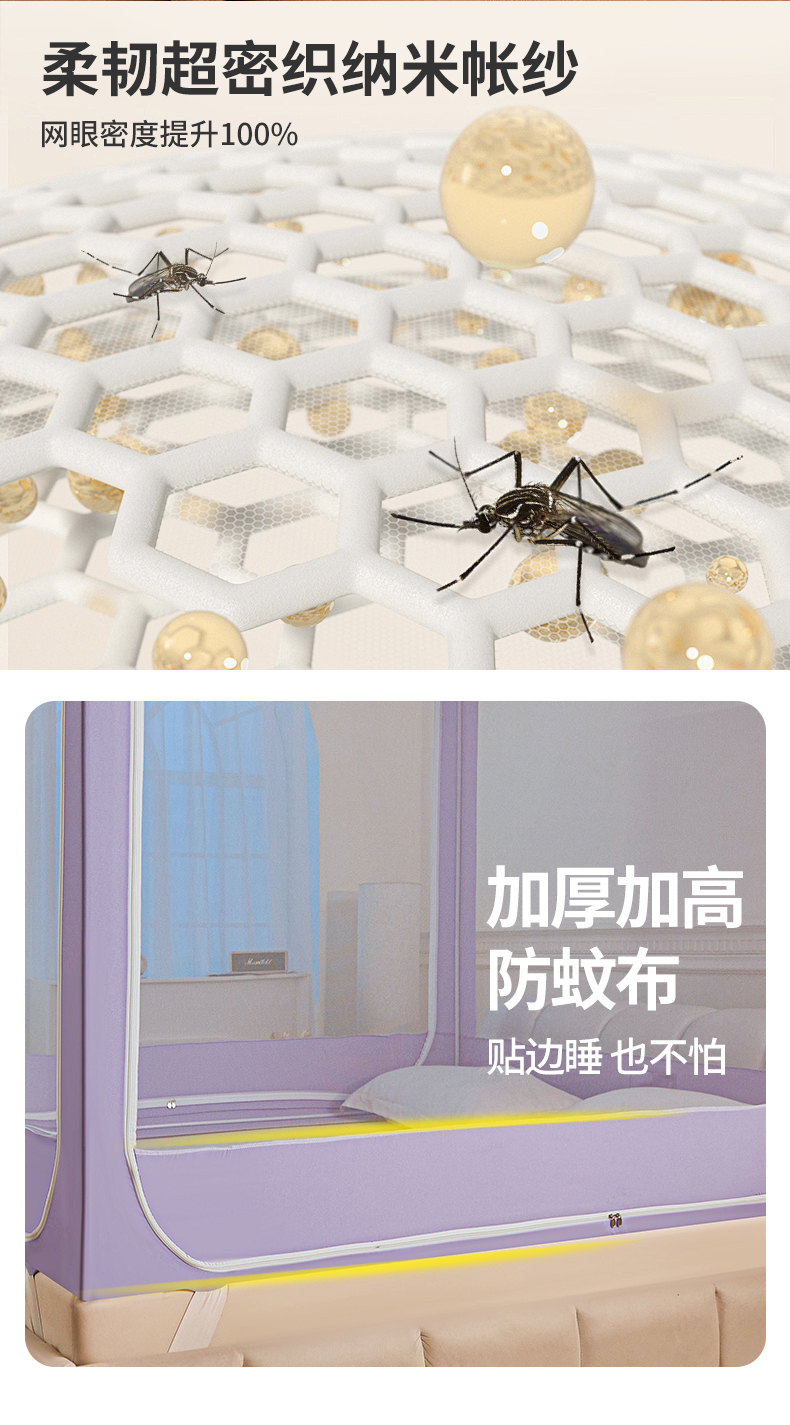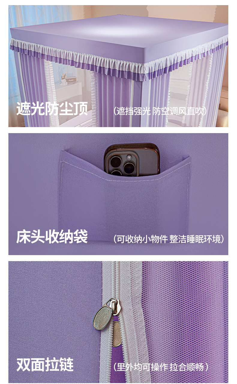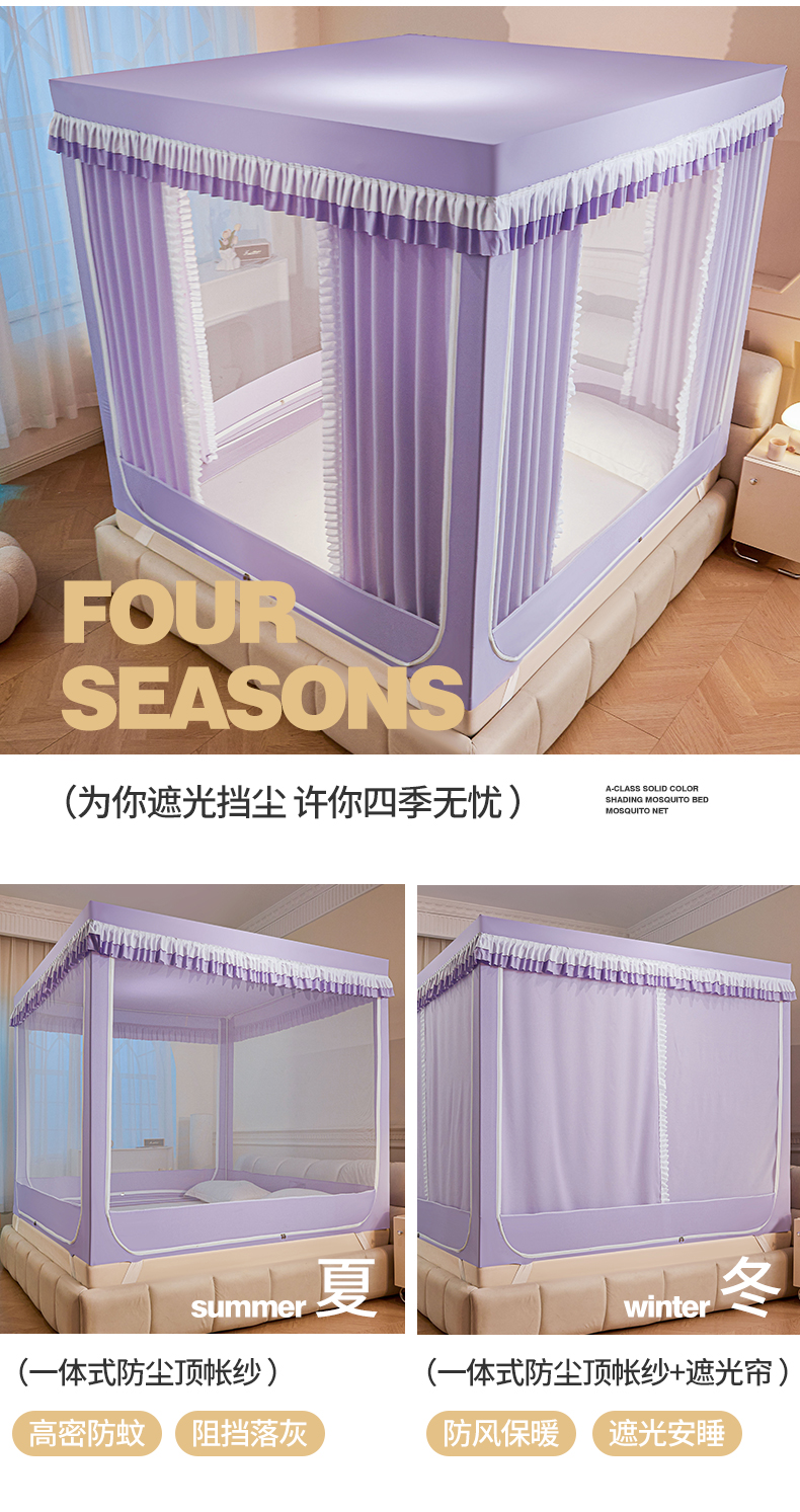 当前位置: 91家纺网 > 商品网购 > 床上用品 > 蚊帐 > 坐床式蚊帐 > 浪幔纱蚊帐 2025新款A类遮光防摔蚊帐坐床拉链全底回底纯色加厚支架 优雅紫【全底带帘款】