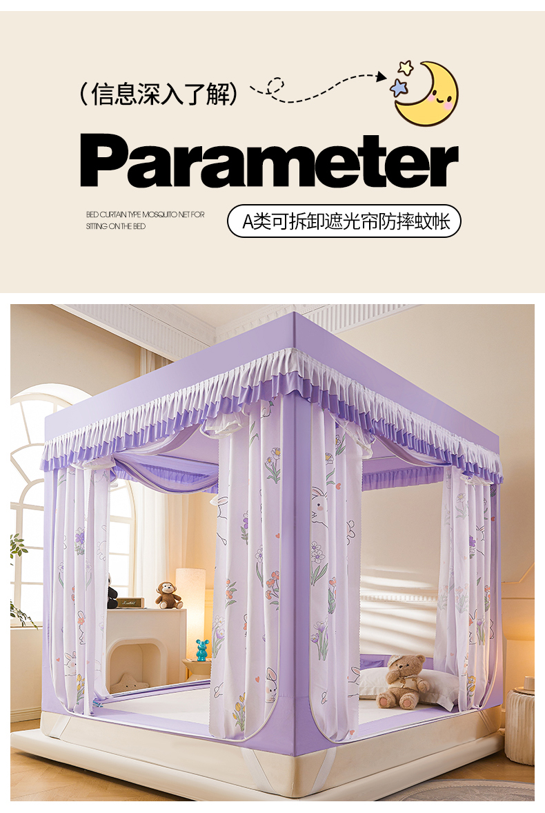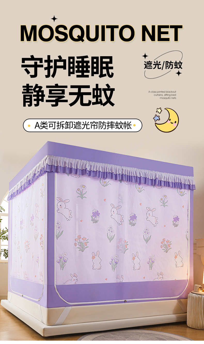 当前位置: 91家纺网 > 商品网购 > 床上用品 > 蚊帐 > 坐床式蚊帐 > 浪幔纱蚊帐 2025新款A类可拆卸床单全底防摔蚊帐遮光床帘一体式回底拉链坐床 花丛小兔【回底款】