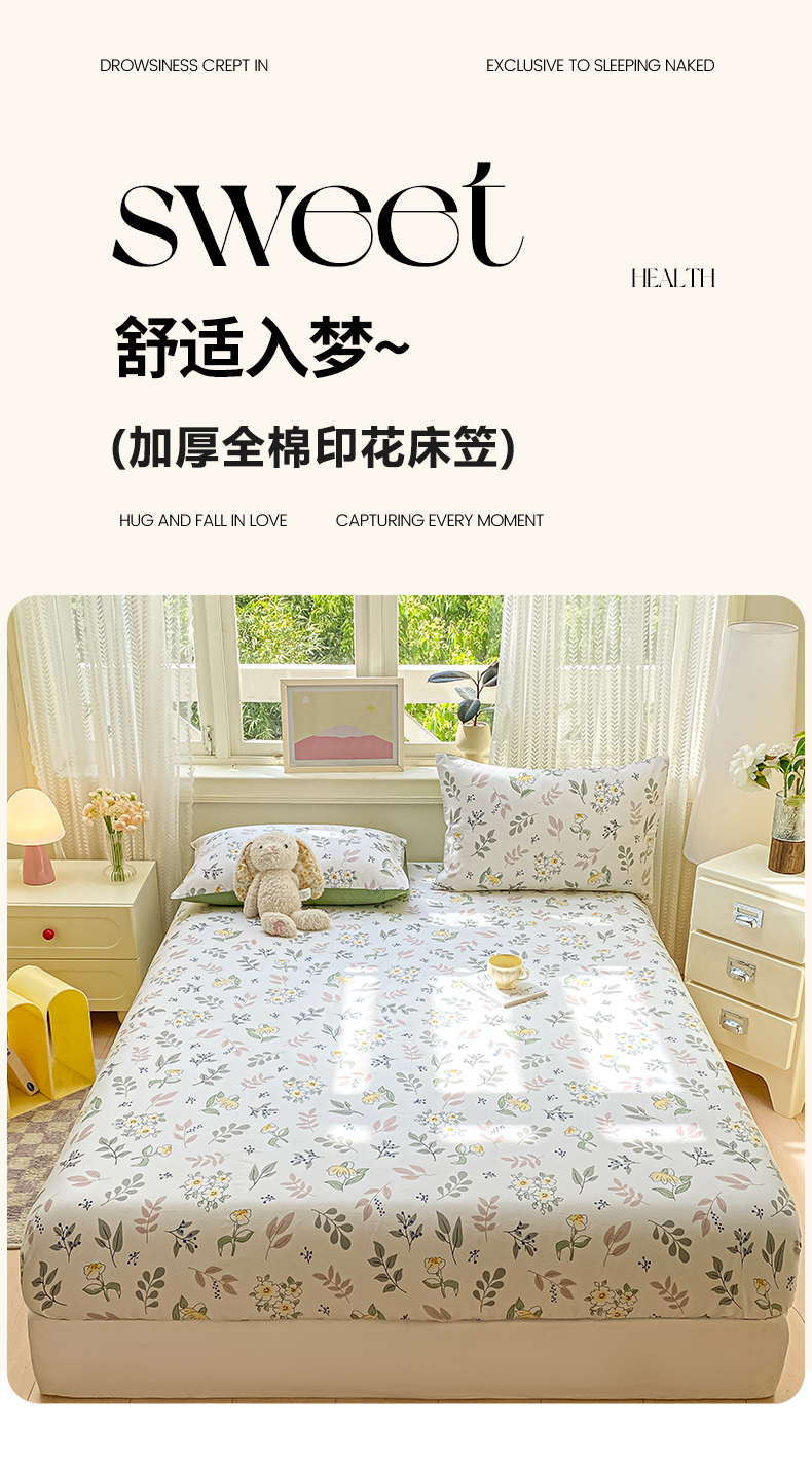 商品名称:黑马家居 2025新款全棉纯棉印花单床笠床笠单件 花韵