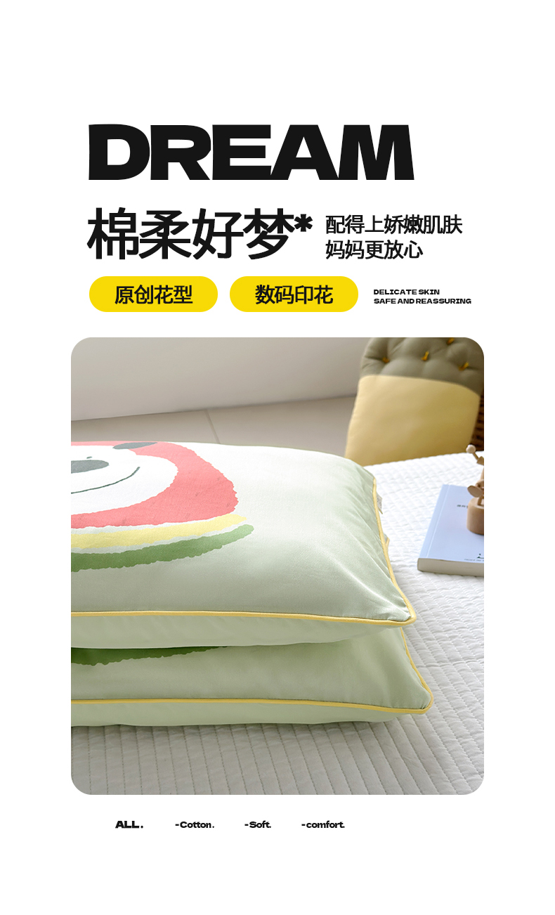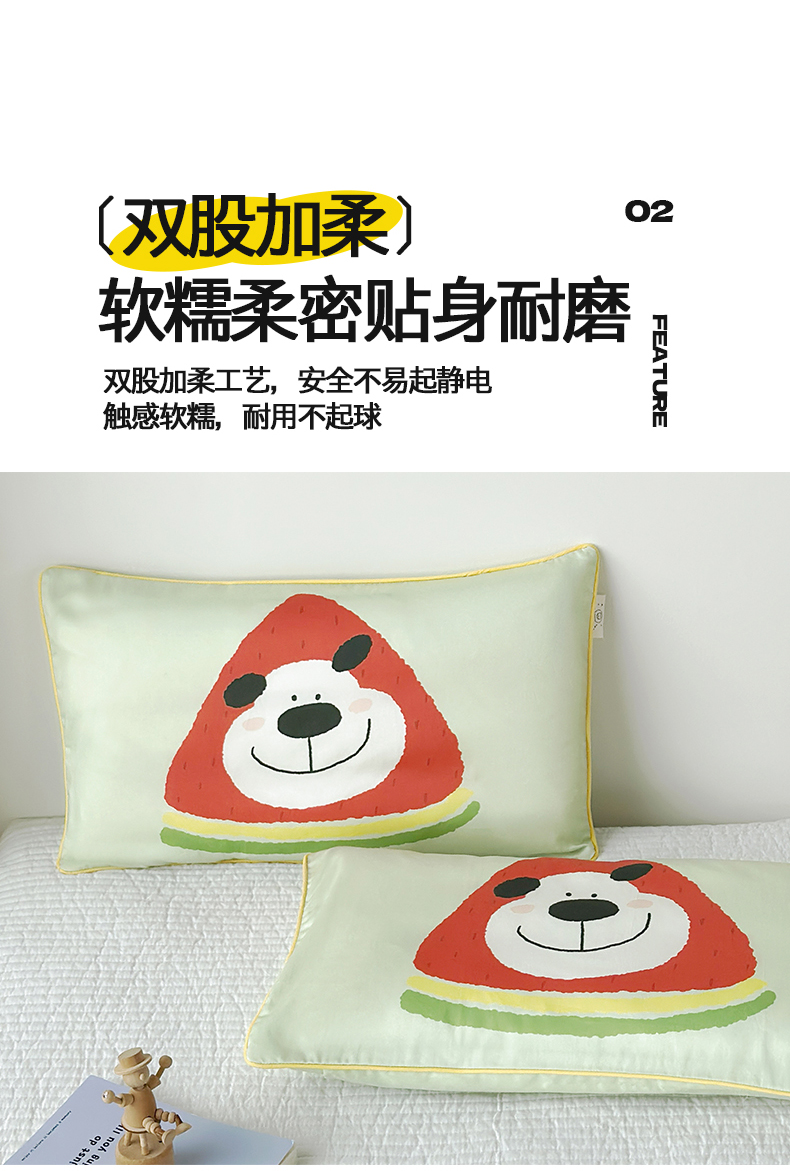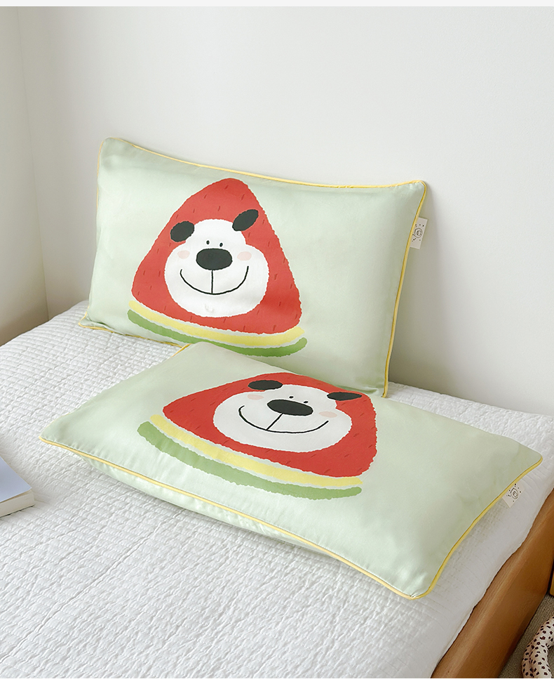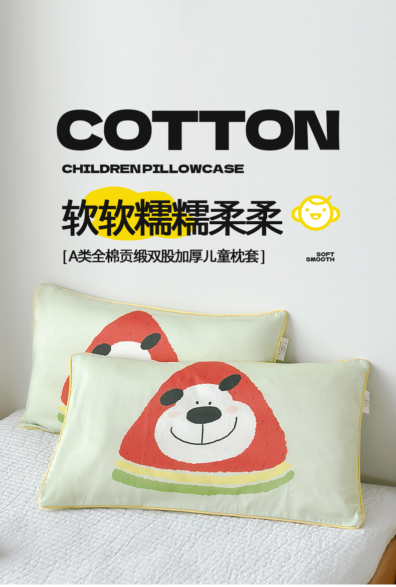 商品名称:荷马之梦 2025新款A类100支全棉贡缎双股加厚加柔儿童枕套-水果系列 小西瓜