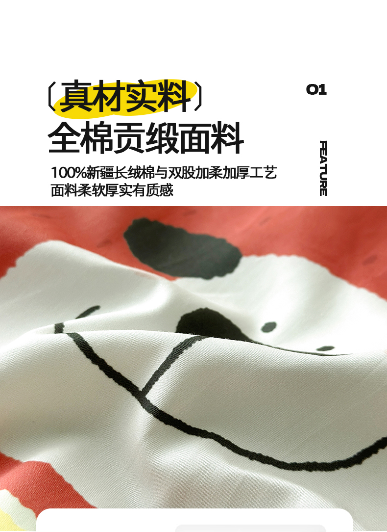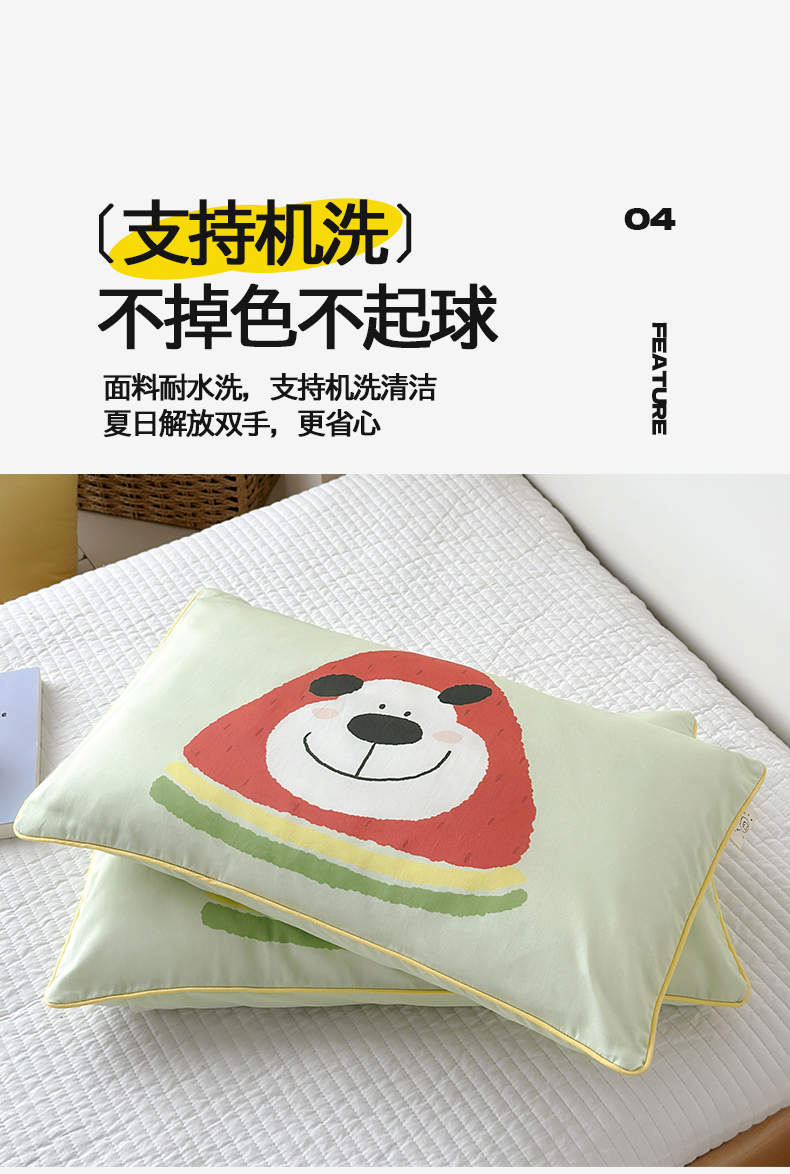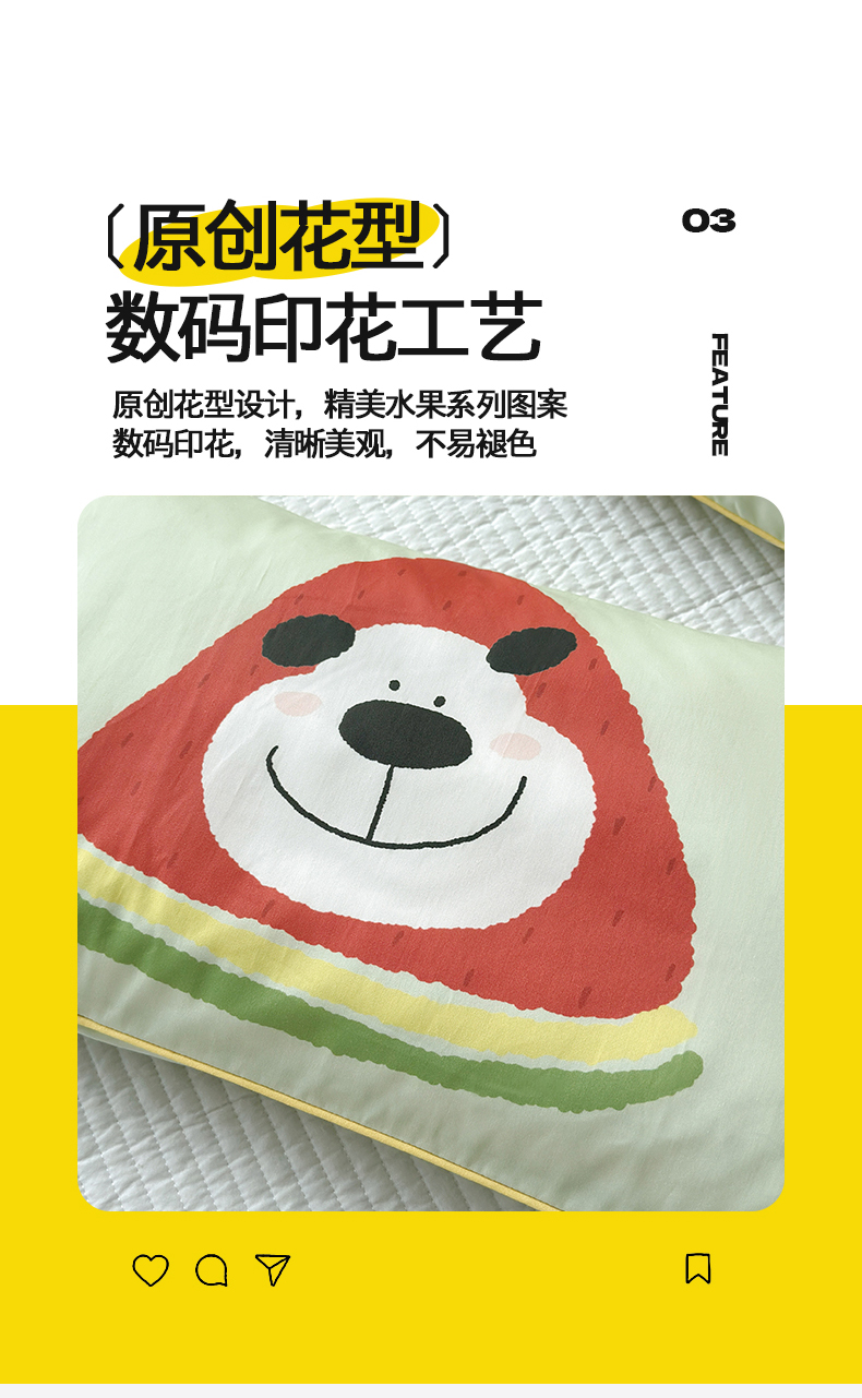商品名称:荷马之梦 2025新款A类100支全棉贡缎双股加厚加柔儿童枕套-水果系列 小西瓜