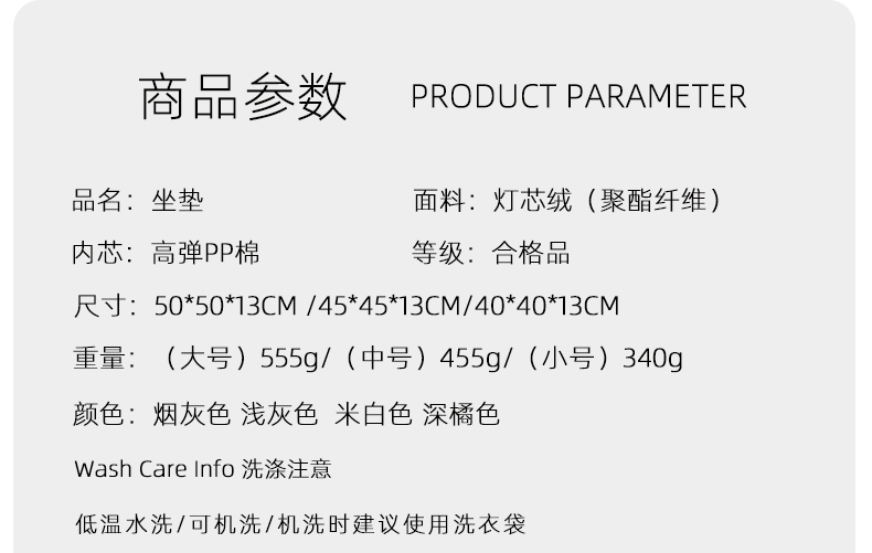 [{"sp_id":11,"sp_name":"\u989c\u8272\u5206\u7c7b","sp_format":2,"sp_list":[{"sp_value_id":657,"sp_value_name":"\u70df\u7070\u8272","sp_value_image":{"id":999,"path":"https:\/\/img3.91jf.com\/ghelp\/2025\/20250510\/11f8dc19-7c43-423a-b4f4-28f7d28f1e5820250510163824905.jpg_30_30.jpg"},"sp_value_video":{"id":0,"img":"","path":"","time":0,"download_num":0,"play_num":0},"price":"11.00","storage":300,"weight":"1.000","is_check_weight":0,"plus_price":"","sp_sort":17}]},{"sp_id":21,"sp_name":"\u5c3a\u5bf8","sp_format":1,"sp_list":[{"sp_value_id":852,"sp_value_name":"40x40x13cm","sp_value_image":{"id":0,"path":""},"sp_value_video":{"id":0,"img":"","path":"","time":0,"download_num":0,"play_num":0},"price":"11.00","storage":100,"weight":"1.000","is_check_weight":0,"plus_price":"","sp_sort":13},{"sp_value_id":853,"sp_value_name":"45x45x13cm","sp_value_image":{"id":0,"path":""},"sp_value_video":{"id":0,"img":"","path":"","time":0,"download_num":0,"play_num":0},"price":"13.50","storage":100,"weight":"1.000","is_check_weight":0,"plus_price":"","sp_sort":14},{"sp_value_id":854,"sp_value_name":"50x50x13cm","sp_value_image":{"id":0,"path":""},"sp_value_video":{"id":0,"img":"","path":"","time":0,"download_num":0,"play_num":0},"price":"15.50","storage":100,"weight":"1.000","is_check_weight":0,"plus_price":"","sp_sort":15}]}]