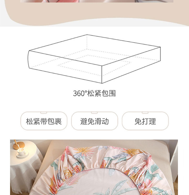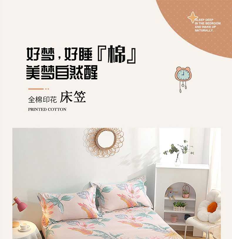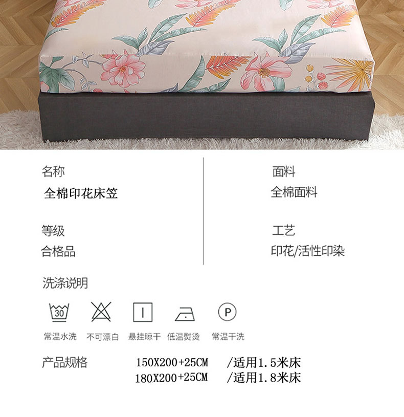 商品名称:贝兰仙奴 2025春夏新款全棉纯棉12868印花单床笠 床笠单件 莎莉杏色