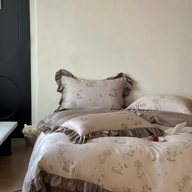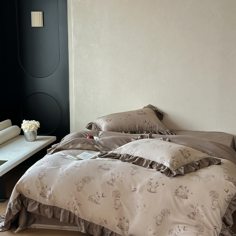 (总)佳汐蓝家纺 2025 春夏新品60支兰精天丝数码印花荷叶边四件套-萌萌兔