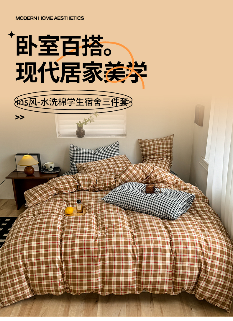 当前位置: 91家纺网 > 商品网购 > 床品套件 > 四件套 > 多品2025新款无印风超柔水洗棉宿舍三件套 时光+黑白格