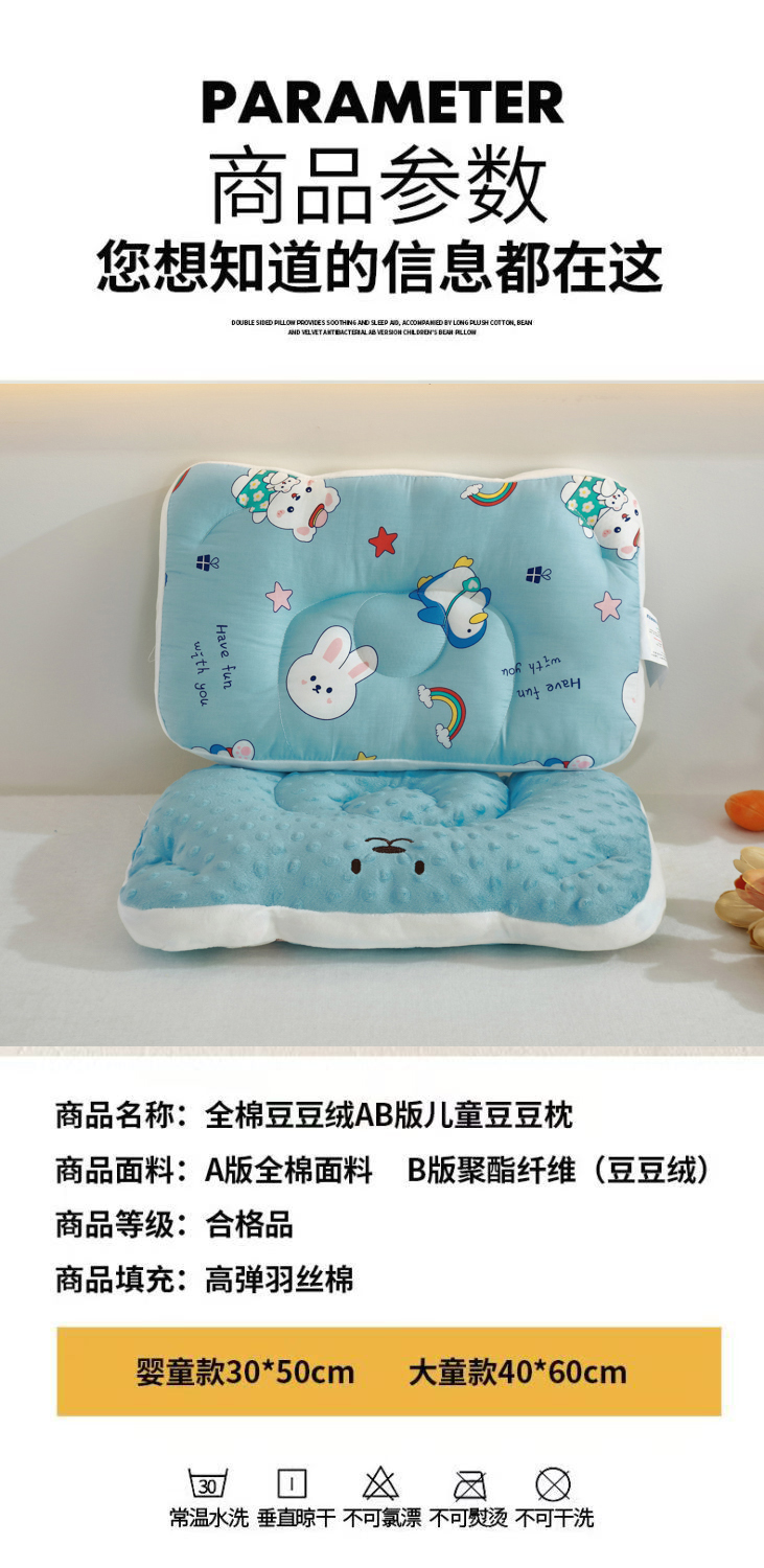 商品名称:(总)冬巢2025新款全棉a类儿豆豆枕幼儿园午睡枕芯颈椎枕头0-3-6岁宝宝定型枕可水洗