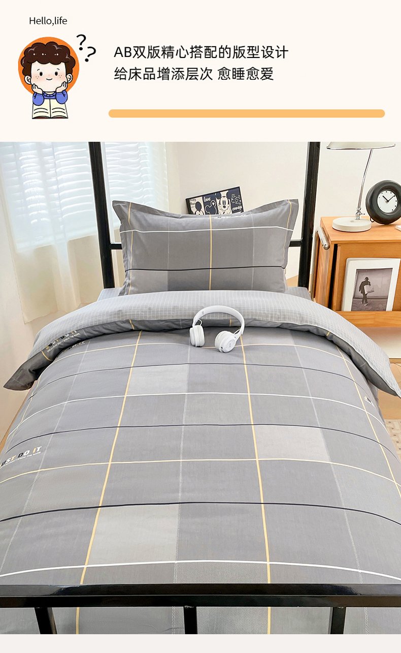 当前位置: 91家纺网 > 商品网购 > 床品套件 > 三件套 > 锦润家纺2025新款全棉13372学生三件套纯棉宿舍六件套 卡里尔-灰