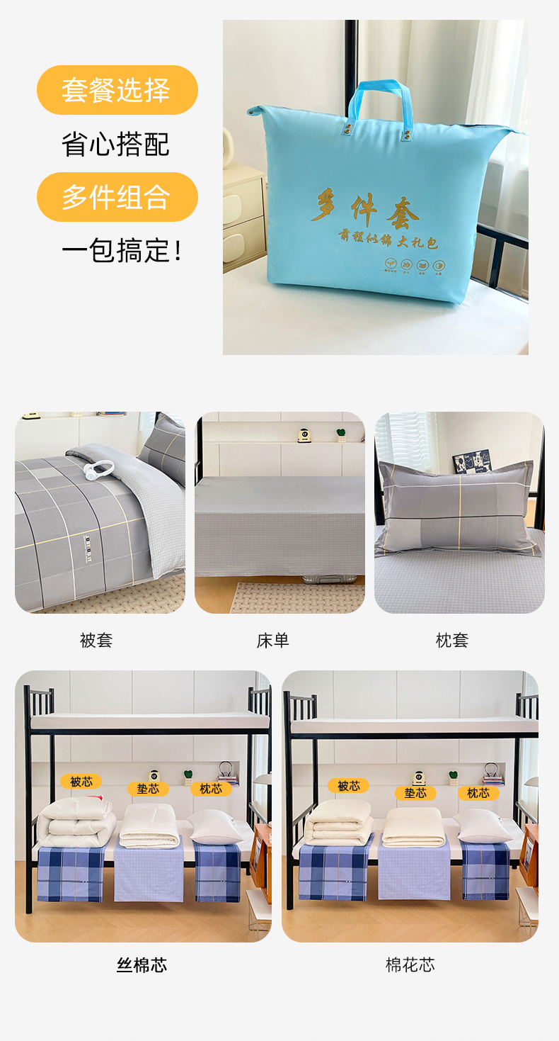 六件套:【三件套+4斤羽丝绒被子+4斤羽丝绒床垫(90*200)+枕芯】 | ¥150.00 |