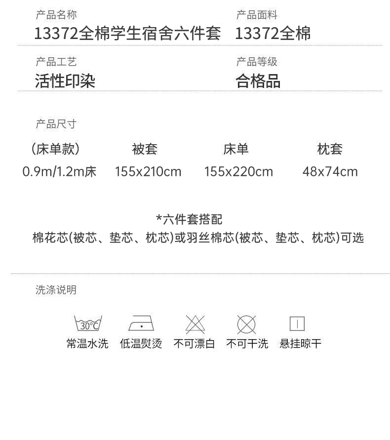 六件套:【三件套+3斤棉花被+4斤棉花褥垫(90*200)+枕芯】 | ¥148.00 |